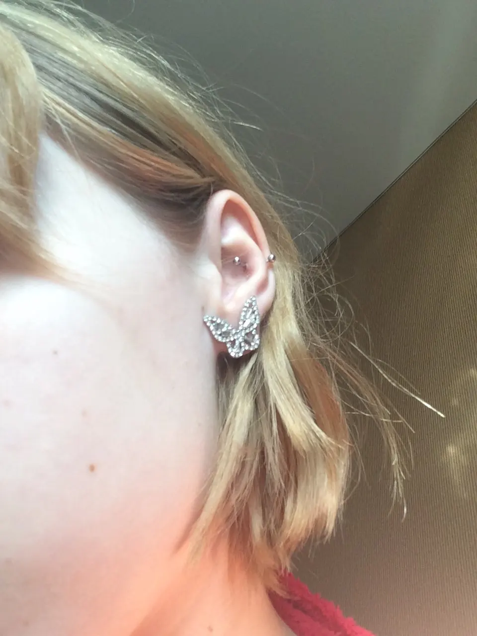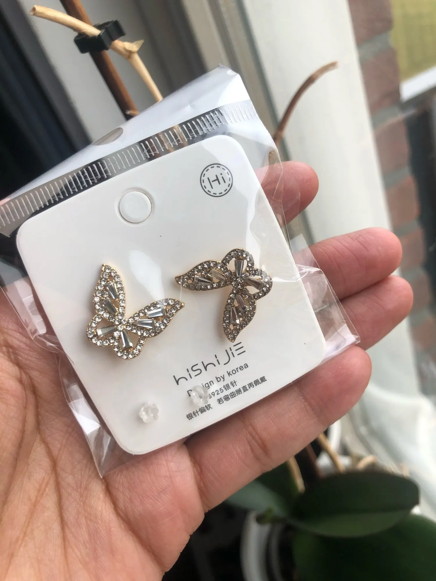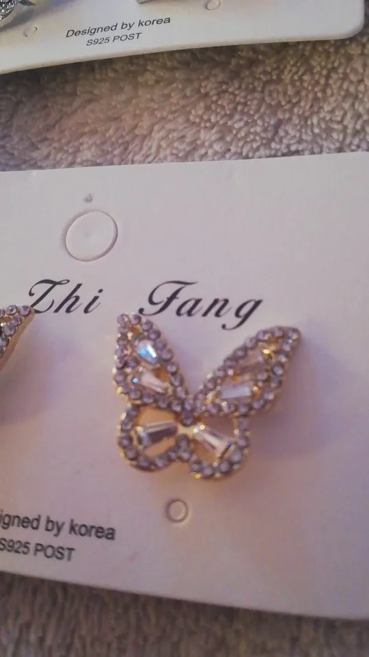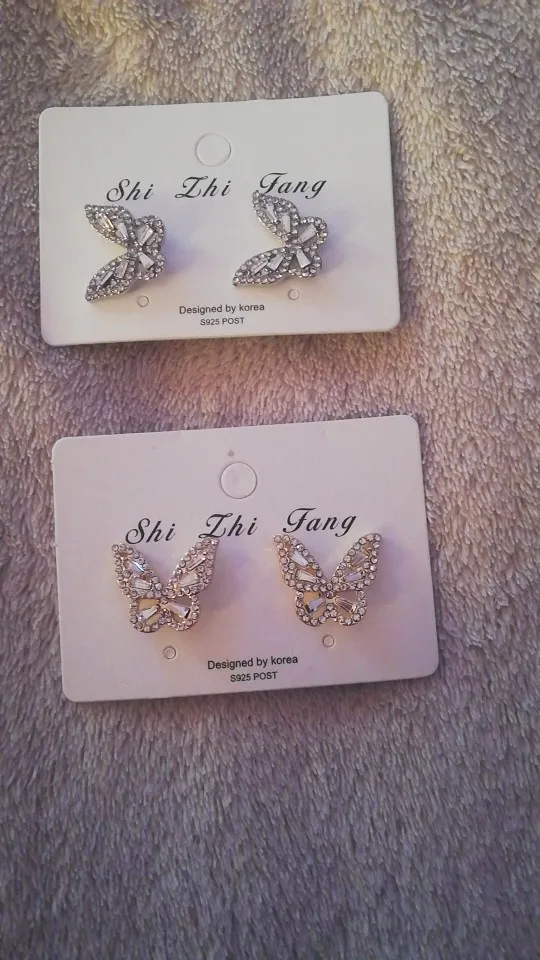 Серьги бабочек, как кольцо. То же фото. Они прибыли в ближайшее время. Спасибо, мистер продавец.