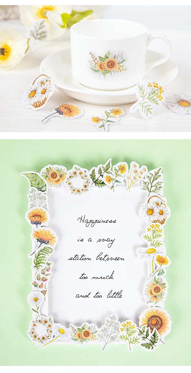 Маргаритки И Подсолнухи канцелярские наклейки Цветочные декоративны...