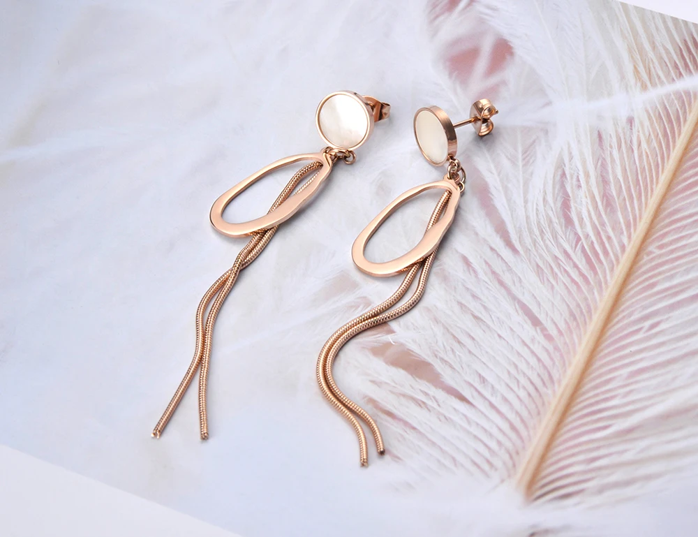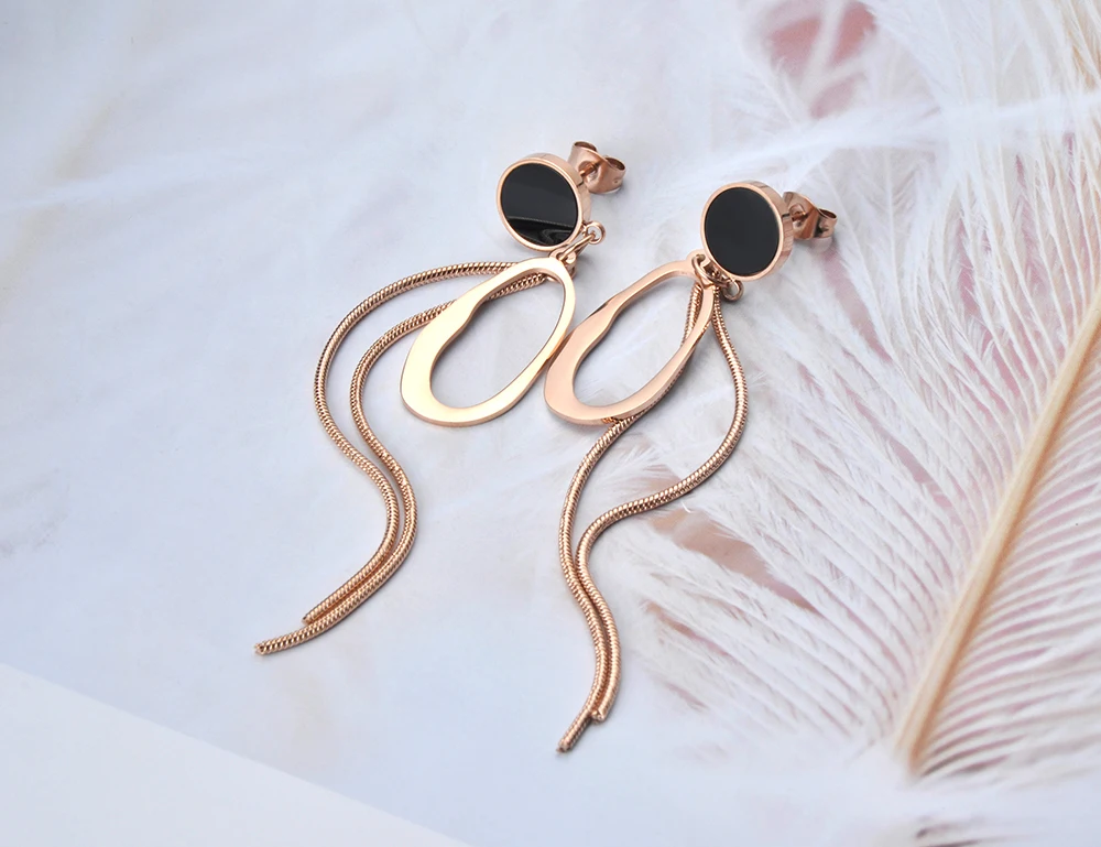 Женские богемные серьги с кисточками, из титана и стали, розовое золото, ручной работы, из акрила, ZE19173