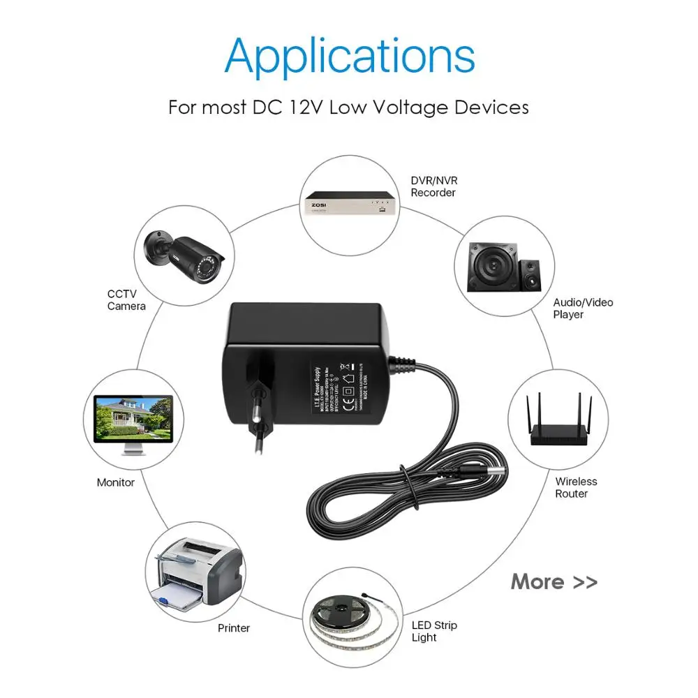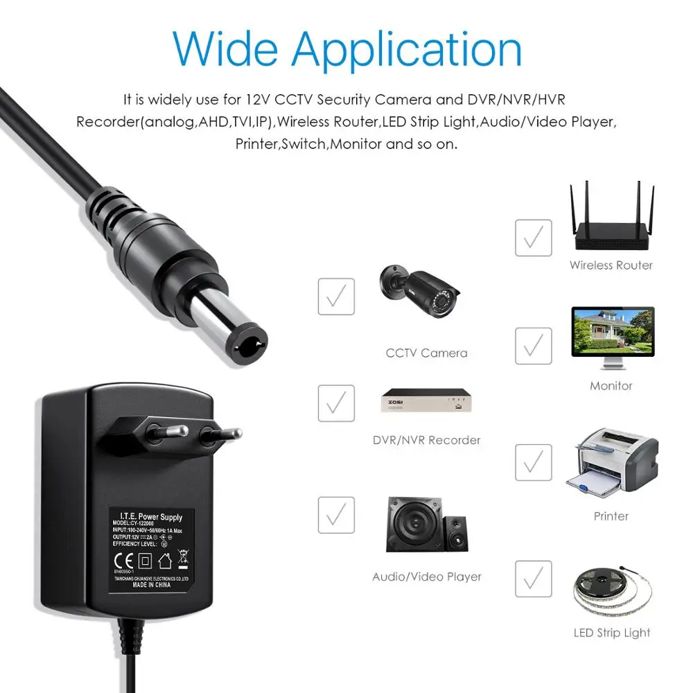 Адаптер питания ZOSI DC 12 В 2 А, профессиональный преобразователь 12 В для систем видеонаблюдения, Европейский адаптер для систем безопасности