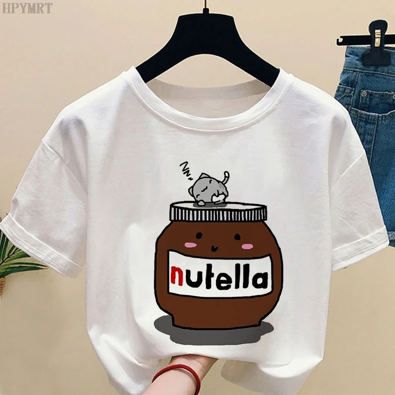 Женская футболка Nutella в стиле Харадзюку, Повседневная белая футболка с забавным графическим принтом, модная летняя футболка большого размера, одежда, 2020