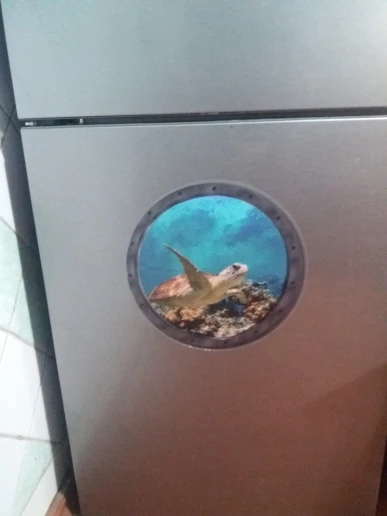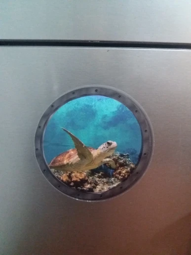Получила наклейку в пакете, сложенную вчетверо. На сгибах помялась бумажная основа которая в принципе снимается при наклеивании. Возникла проблема с серебристым холодильником - сама наклейка прозрачная и на сером фоне очень плохо видна, пришлось вырезать круг из бумажной основы меньшего размера чем наклейка и подложить под нее, чтобы края выступали и приклеились к поверхности холодильника. Кстати клеится отлично. В целом, результатом довольна, с белым фоном таких проблем не будет - рекомендую))) Продавец-молодец)))