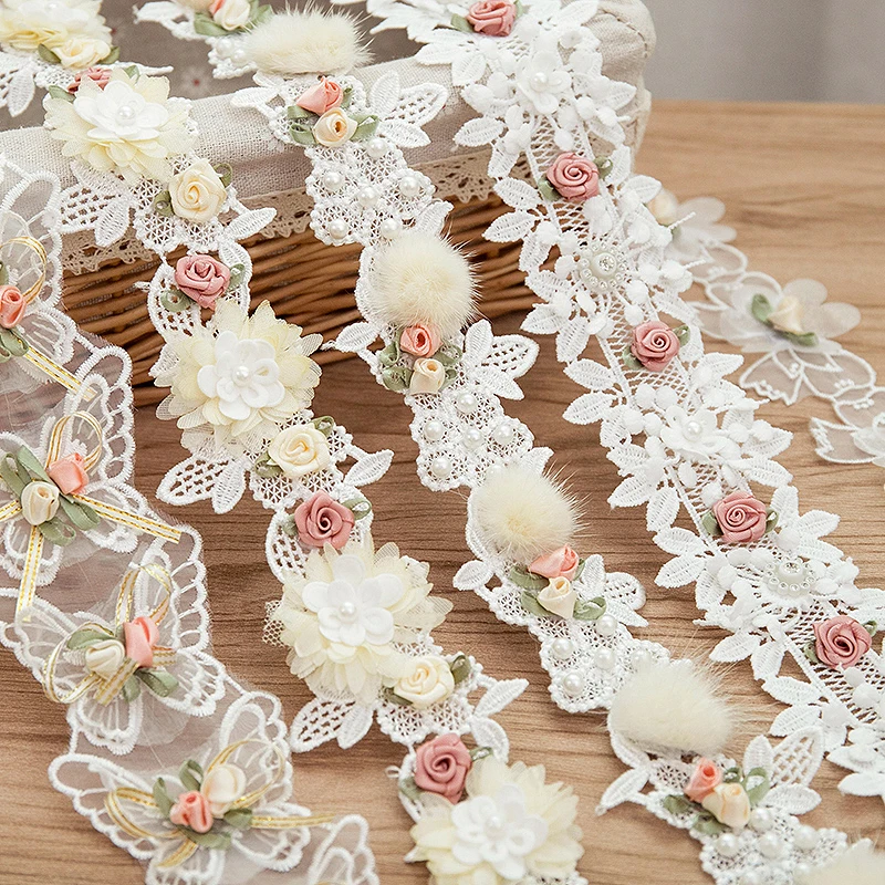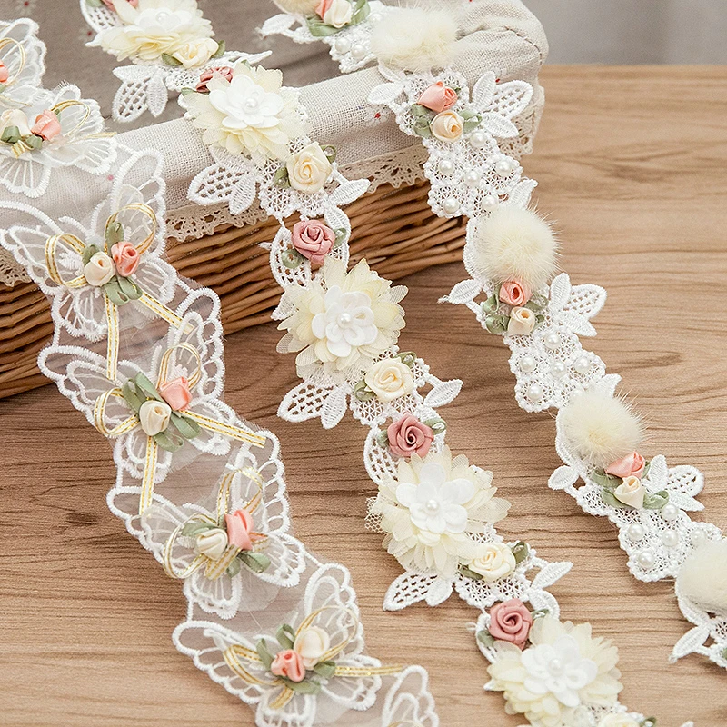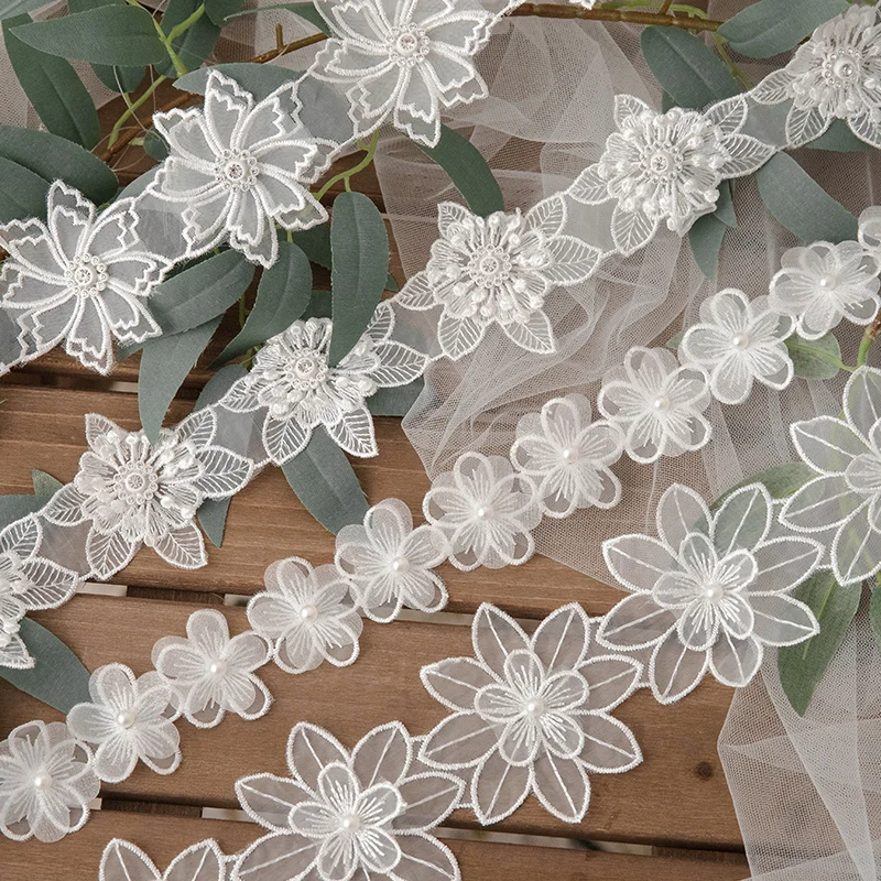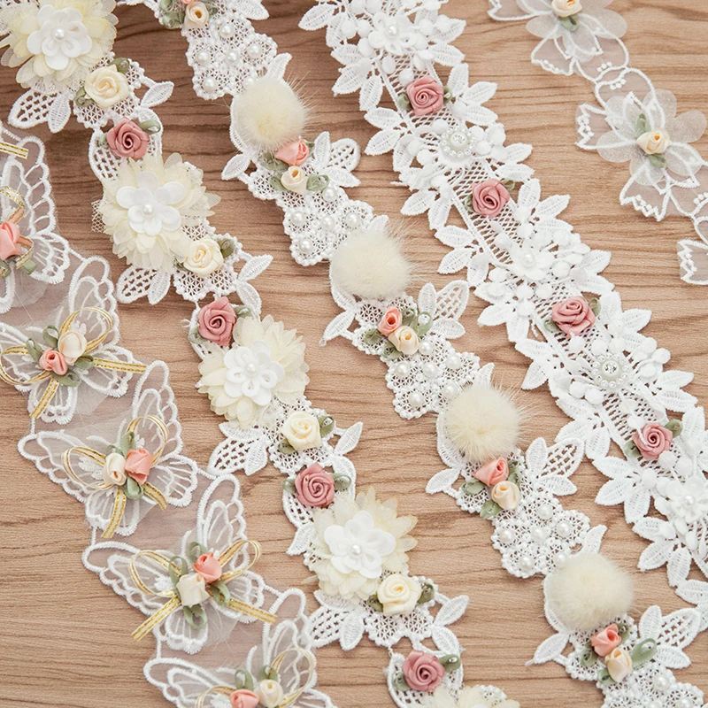 Белая кружевная отделка с 3D цветами и бабочками, кружевная лента для рукоделия, шитья, изготовленные вручную Свадебные украшения