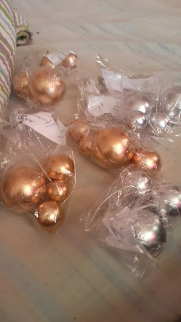 Спасибо продавцу. Товаром довольна. Шарики крупные. Есть кое-где небольшие вмятинки, но это не страшно. Доставлено быстро.