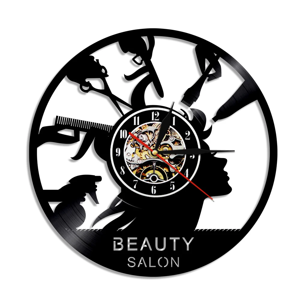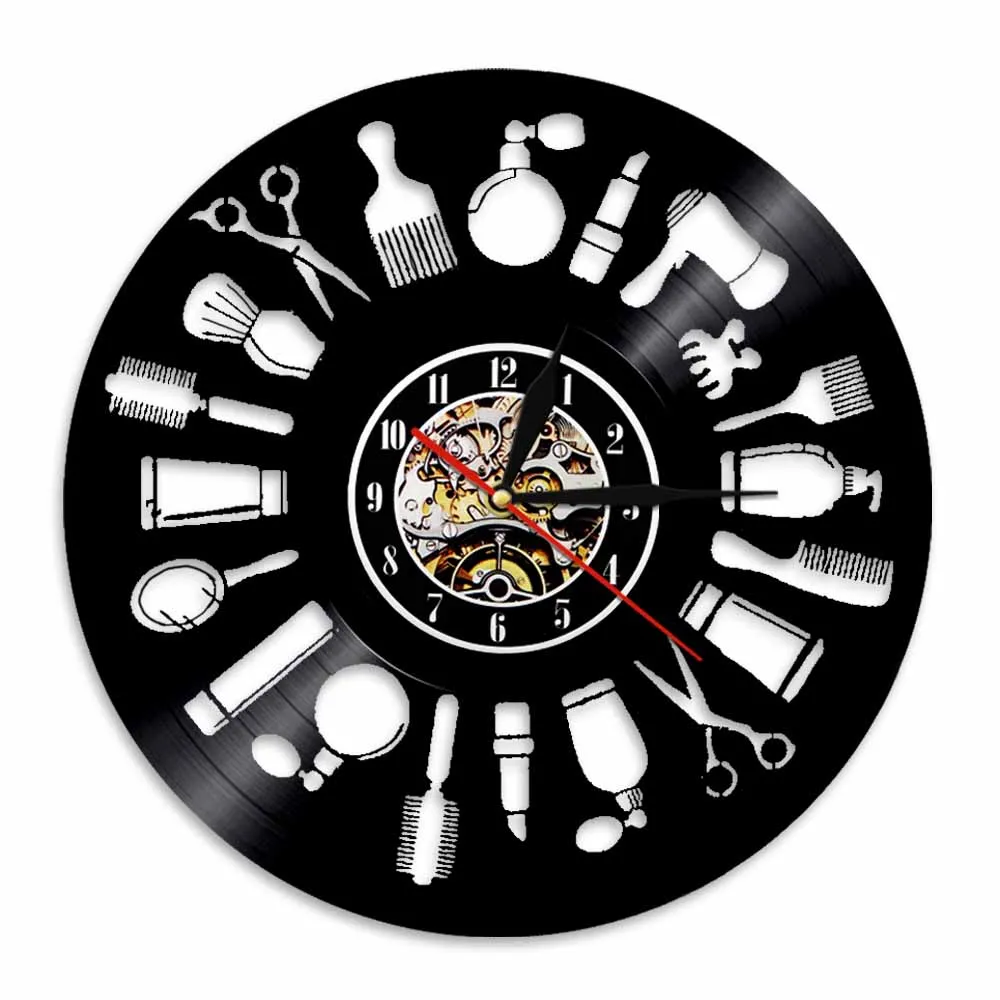 Настенные часы для парикмахерской, современный дизайн, виниловая пластина, винтажные аксессуары для салона красоты, 3d-часы, подарок