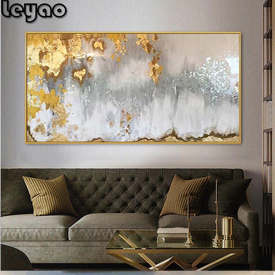 Алмазная живопись большого размера ручной работы, абстрактная живопись, золотой, серый, белый, великолепная абстрактная 5d алмазная вышивка, живопись, домашний декор
