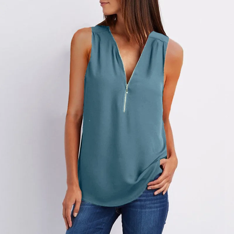 Женская шифоновая футболка без рукавов размера плюс, сексуальная офисная футболка размера плюс с v-образным вырезом для весны и лета