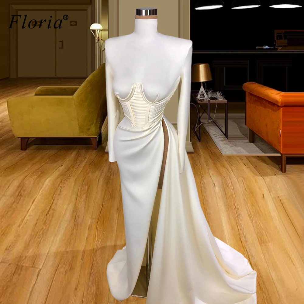 Два дизайна, белые вечерние платья с длинными рукавами и высоким воротом, платья знаменитостей, вечерняя одежда, арабские платья для вечеринок, Vestidos Formales