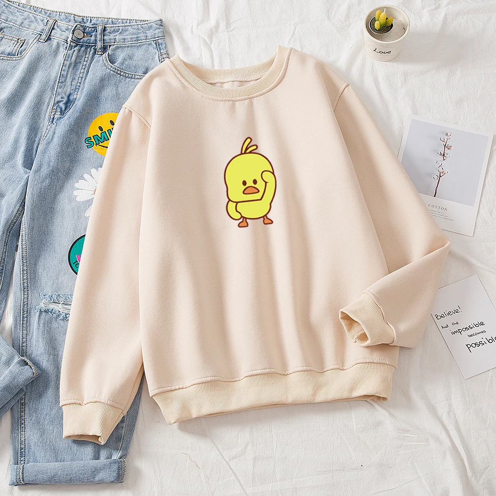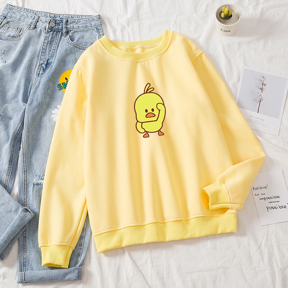 Милые толстовки в стиле Харадзюку, свитшот с круглым вырезом, женская модная Толстовка в стиле оверсайз с принтом желтой утки, спортивный костюм, популярные забавные Теплые Топы