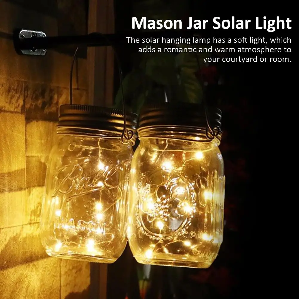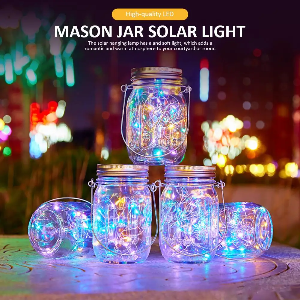Mason Jar солнечный светильник светодиодный IP65 Водонепроницаемый интеллектуальный контроль Mason Jar подвесной фонарь вечерние настенные настольные декоративные лампы