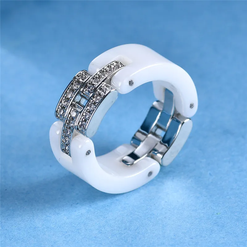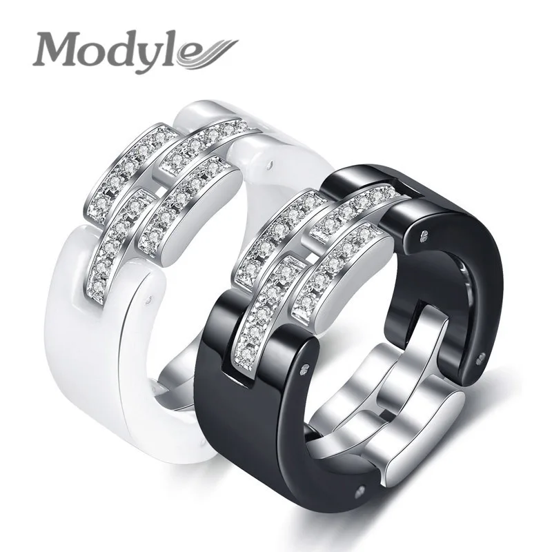 Modyle черный, белый цвет керамическая Anneaux кольца ювелирные изделия с украшением в виде кристаллов Свадебные обручальные кольца для женщин вечерние аксессуары