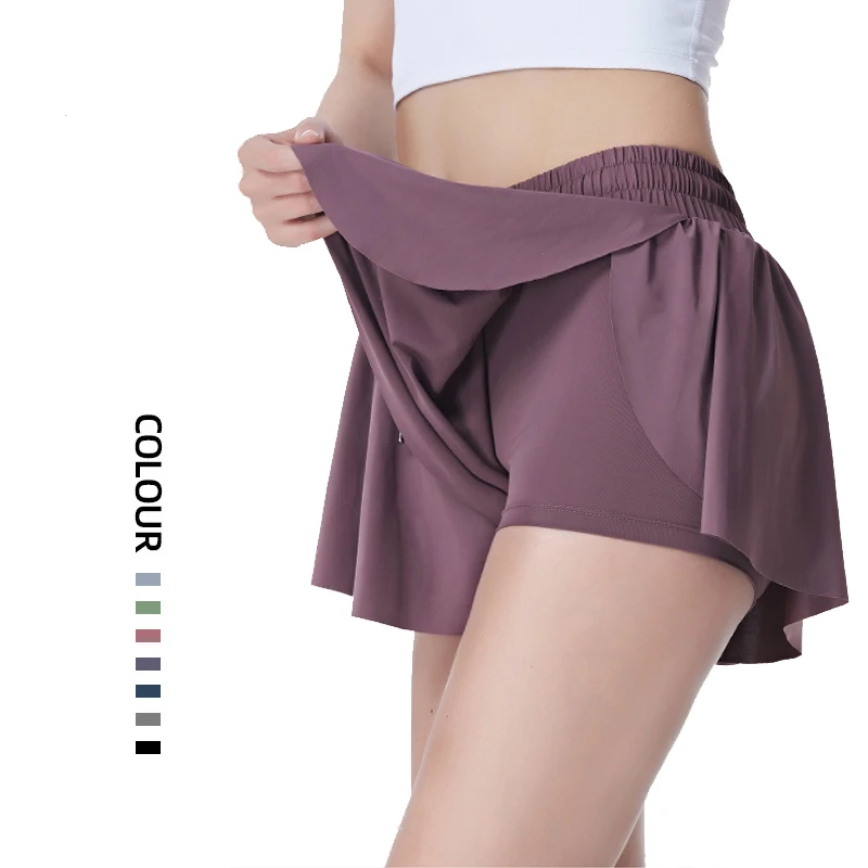 Юбка женская быстросохнущая 2 в 1, фальшивые брюки с оборками для йоги, тренажерного зала, тренировок, тенниса, бадминтона, бега, спорта