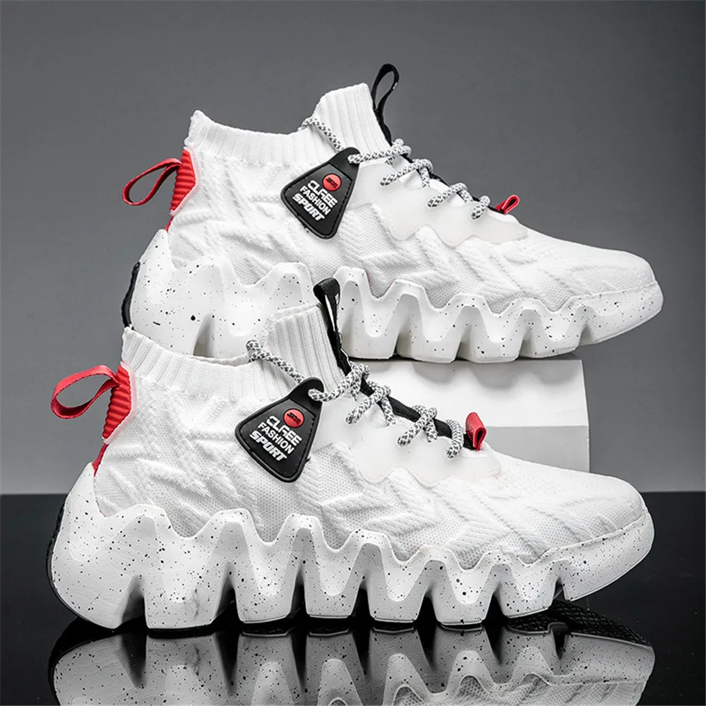 Кроссовки-носки мужские высокие, дышащая повседневная обувь без шну...
