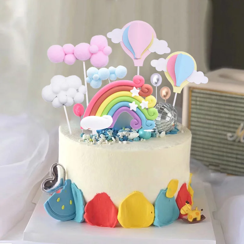 Топпер для торта в виде единорога, Радужный облако, воздушный шар, декорирование тортов капкейк Топпер, флажки для торта для дня рождения, украшение для свадьбы