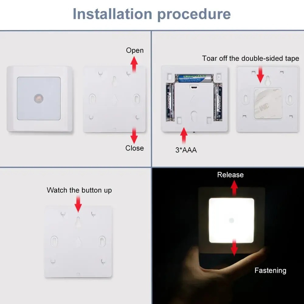 Особенности: Встроенный 8 светодиодный лампы, супер яркий, длительный срок службы. Автоматическое распознавание: светильник загорается, когда вы получите его в пределах 3 метров, и он погаснет через 15 секунд после того, как вы пройдете за пределы его чувствительного диапазона. Высококачественный материал, стильный и умный дизайн. Питание от аккумулятора: питание от 3 батареек AAA (не входят в комплект). С помощью 3M двусторонней клейкой ленты для фиксации индукционной лампы человеческого тела. Подходит для использования в помещениях, таких как спальня, шкафы, шкаф, подвал и т. д. Спецификация: Материал: АБС-пластик Цвет изделия: белый Цвет светильника: белый Источник света: светодиодный (8 шт.) Размер: 86 мм x 86 мм x 21 мм (3,4 дюйма x 3,4 дюйма x 0,8 дюйма) Вес: 66 г Источник питания: 3 * AAA батареи (не входят в комплект) 3 режима: ВКЛ.: всегда светильник ВЫКЛ: всегда выключается Авто: режим чувствительности Посылка включает в себя: Ночной светильник с активированным движением-1 шт. Наклейка 3M-1 шт.
