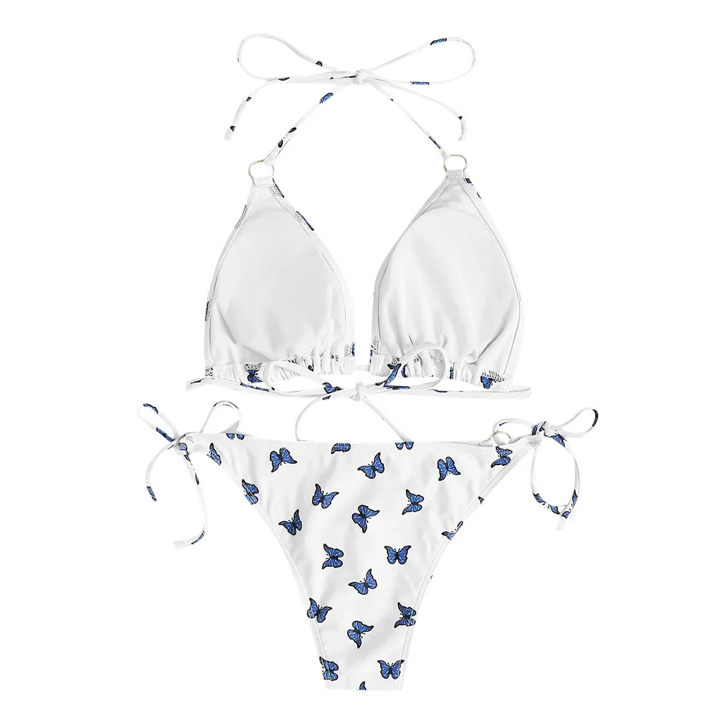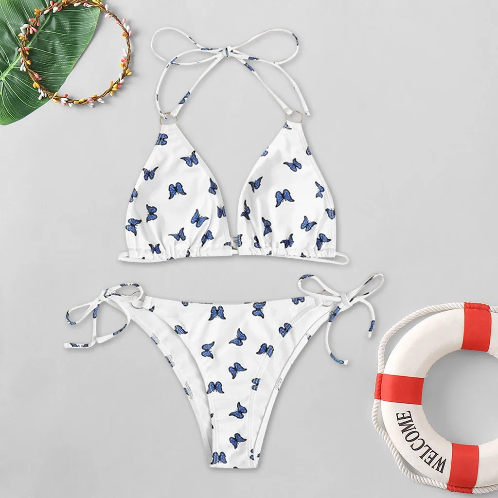 Летний женский комплект бикини из двух предметов, купальник с принтом бабочки, высокая талия, пуш-ап, бразильские стринги, купальный костюм, пляжная одежда