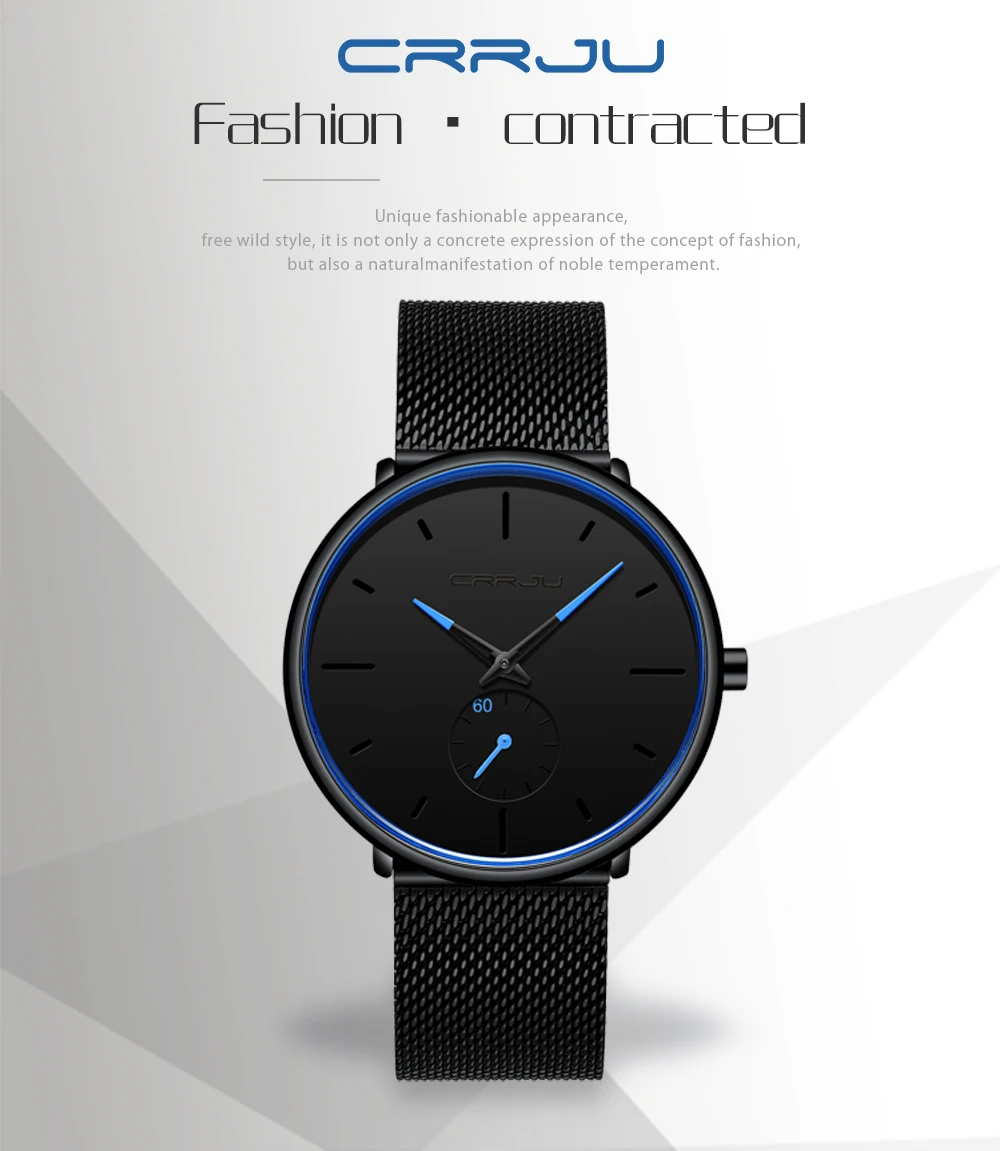 CRRJU модные мужские часы ультра тонкие кварцевые часы для мужчин 2...