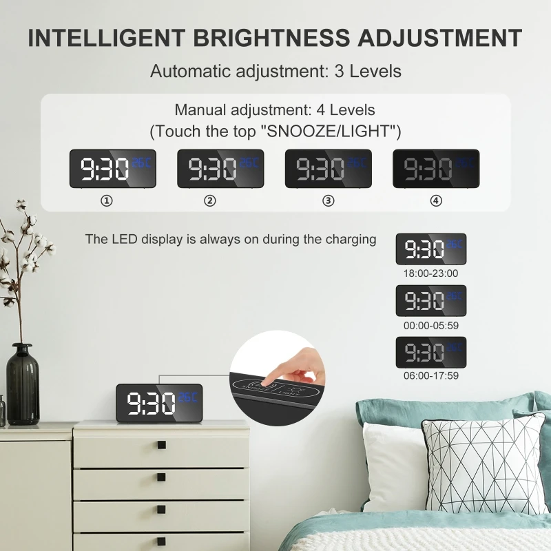 Светодиодный цифровой будильник часы для спальни Настольный цифровой будильник электронные USB настольные зеркальные часы украшение для домашнего стола