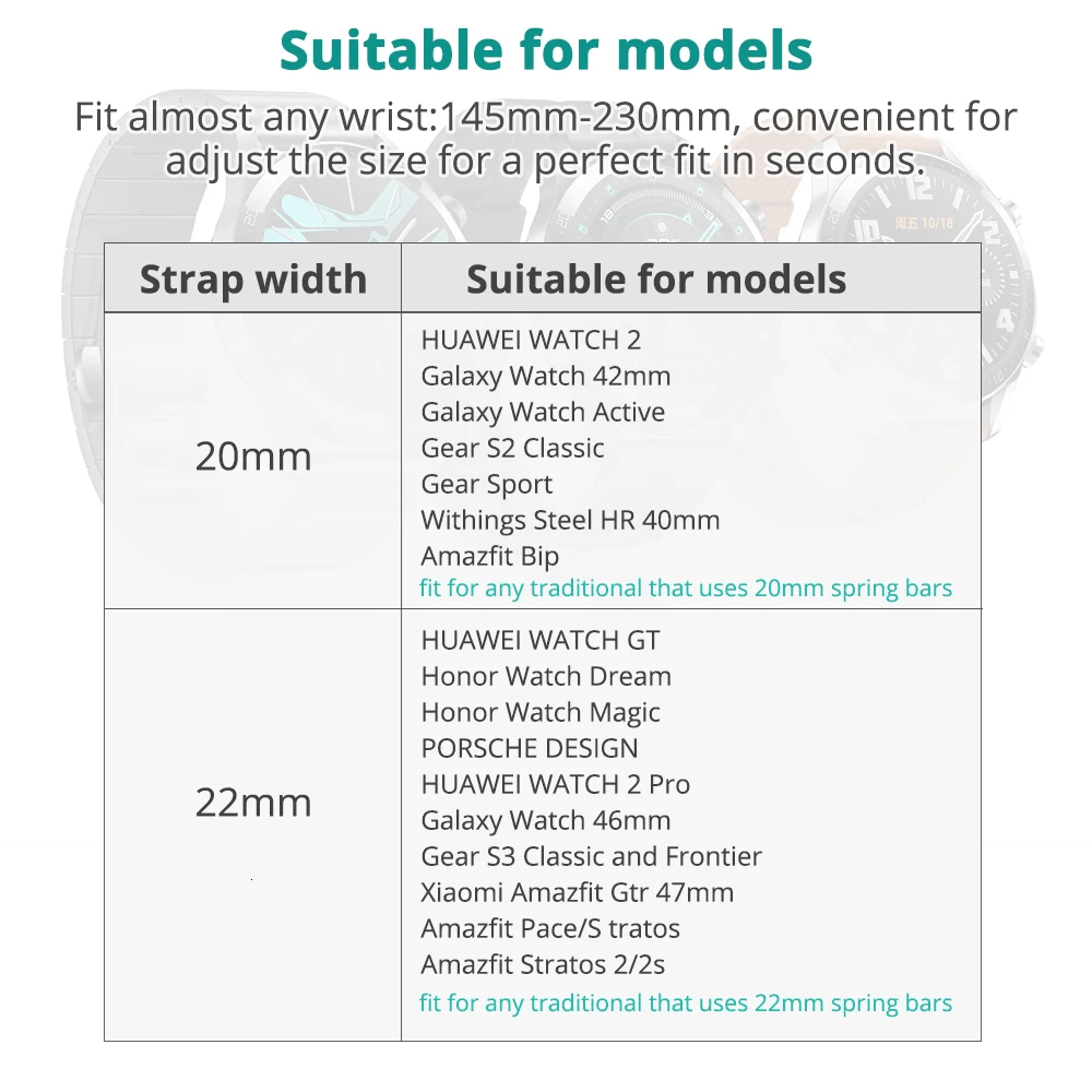 Эти полосы подходят для Samsung Galaxy Watch Active 42 мм 46 мм GearS2 S3, Huami Amazfit gtr bip, Huawei GT 2.