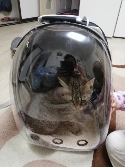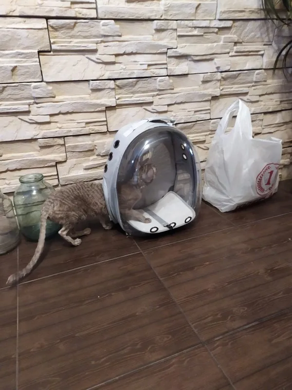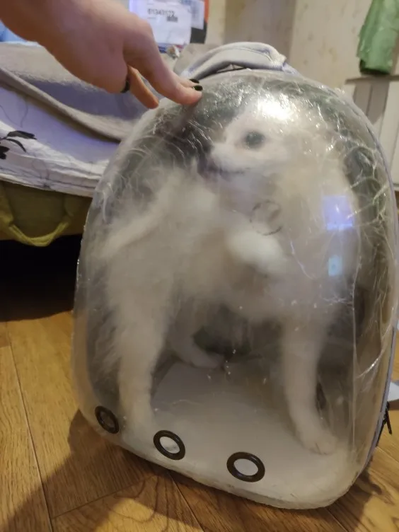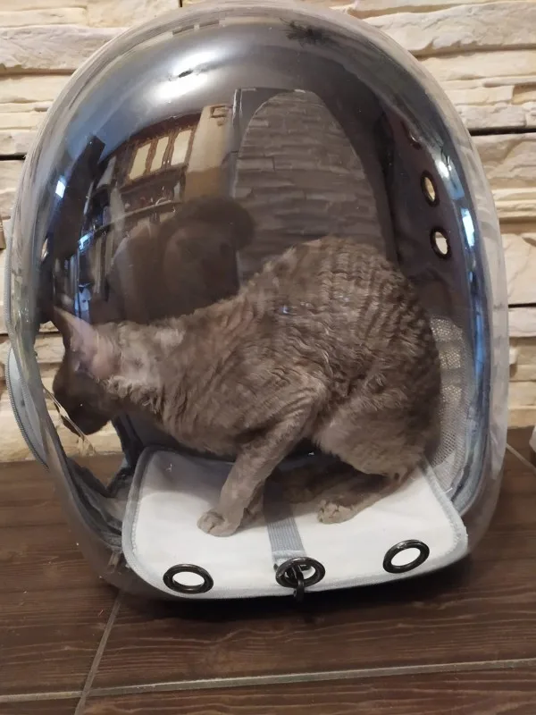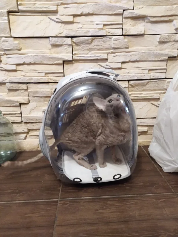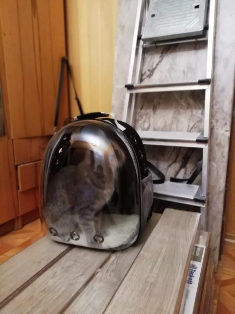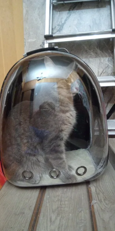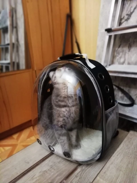 Классный рюкзак! Доставка в СПб молниеносная! Кошка 4,1 кг влезла, но пока ничего не поняла)
