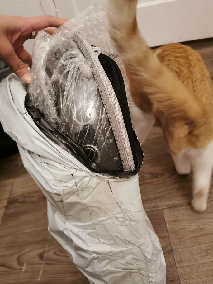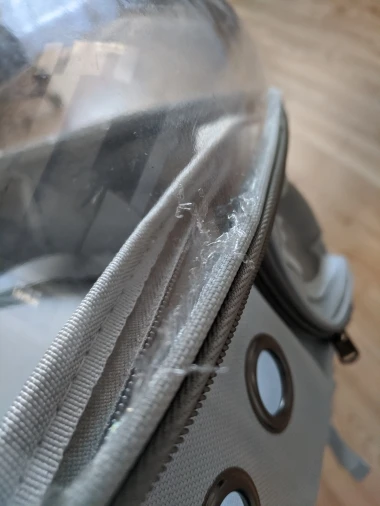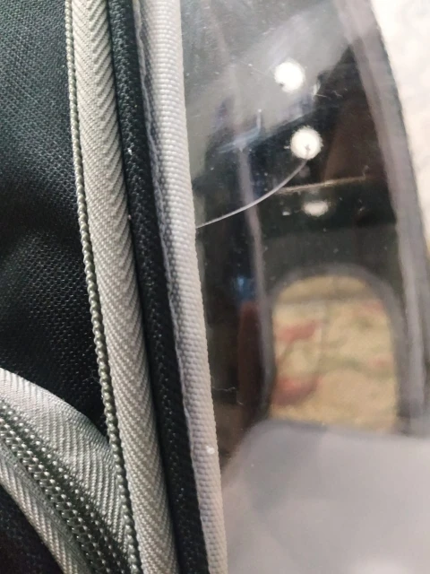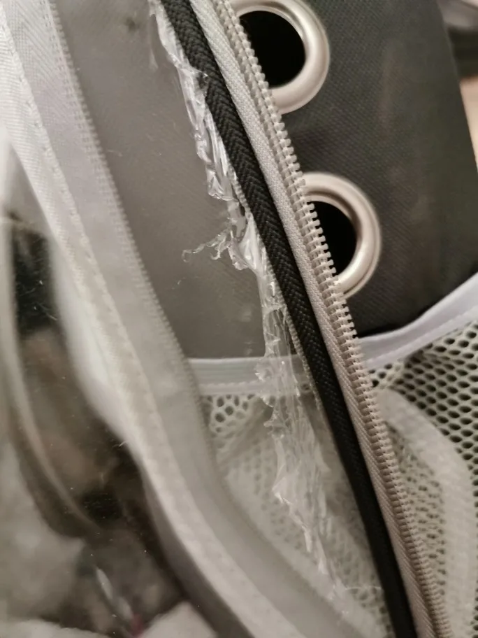 Рюкзак классный. Пленка убиралась относительно легко, нужно подворачивать с силой молнию и ее затем легко убрать. Есть один дефект небольшой (фото). В целом довольна. Для черного кота серый рюкзак отлично подошел. До спб 20 дней