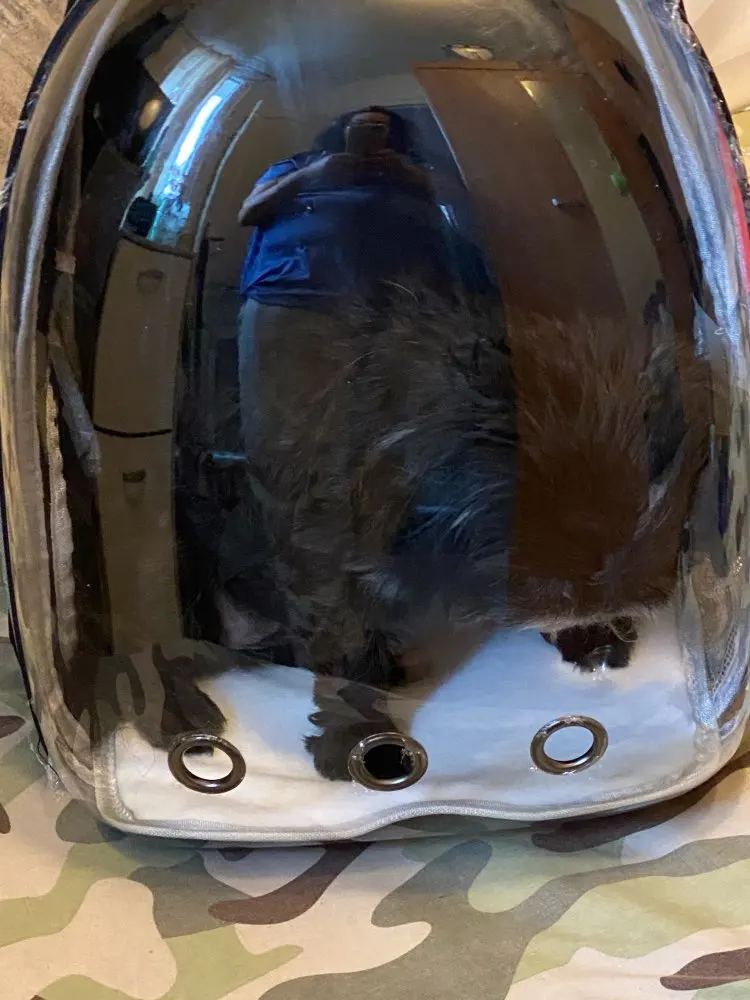 Рюкзак очень хороший, заказ прибыл быстро, я действительно рекомендую этого продавца и продукт, который облегчает транспортировку моего питомца