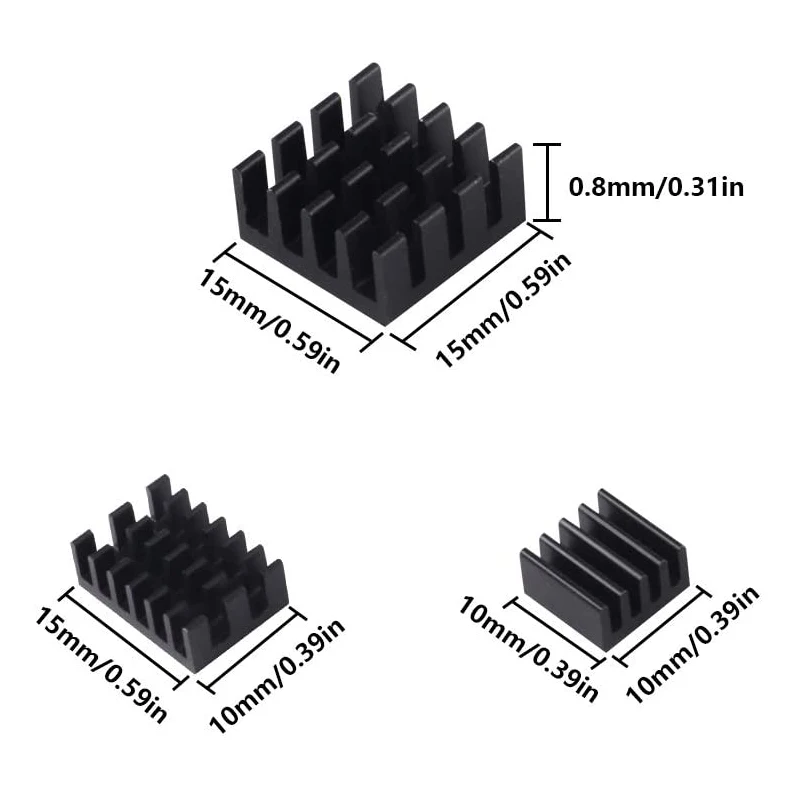 Функция: Этот радиатор из чистого алюминия включает тепловую ленту, которая эффективно переносит тепло на радиатор, обеспечивая дополнительный охлаждение IC. Контуры эти радиаторы) идеально подходят к Raspberry Pi, 4B стандарт.
