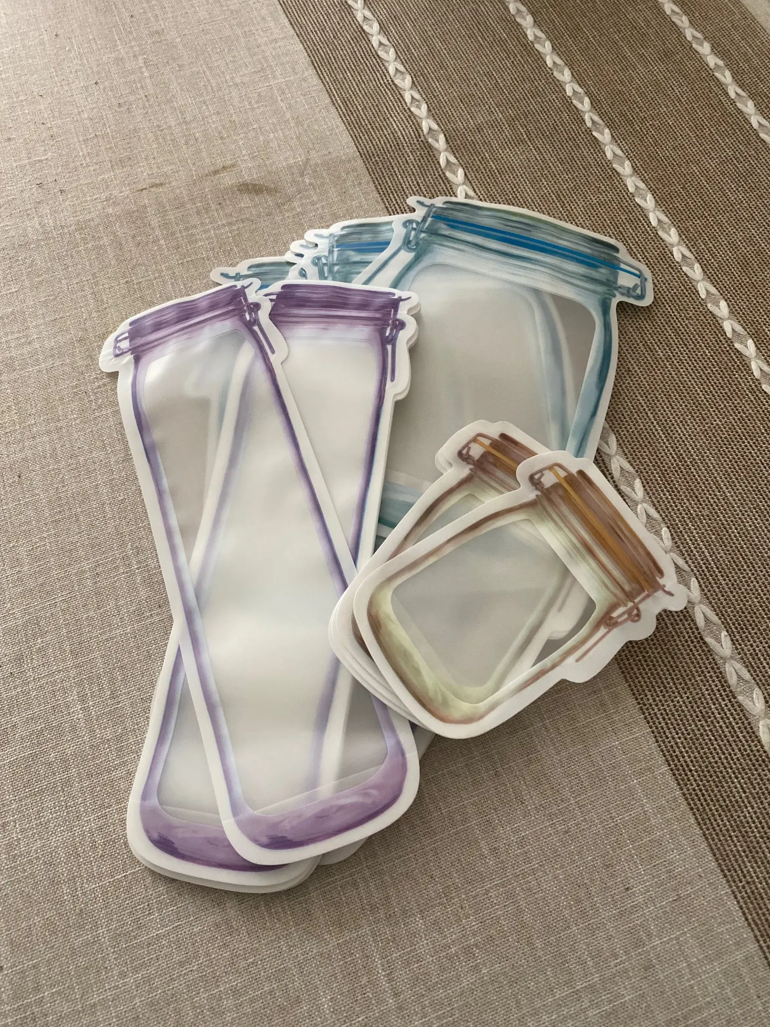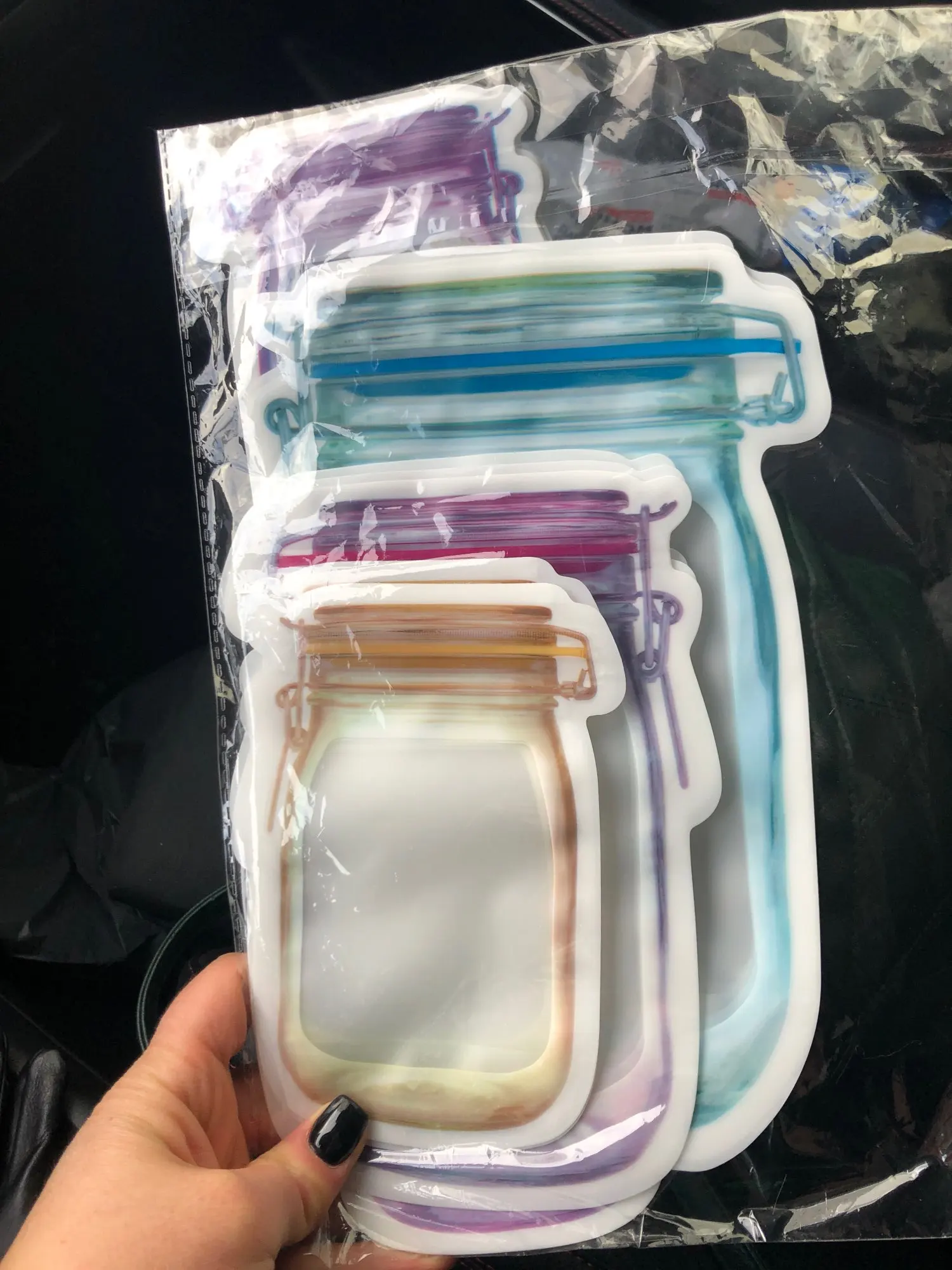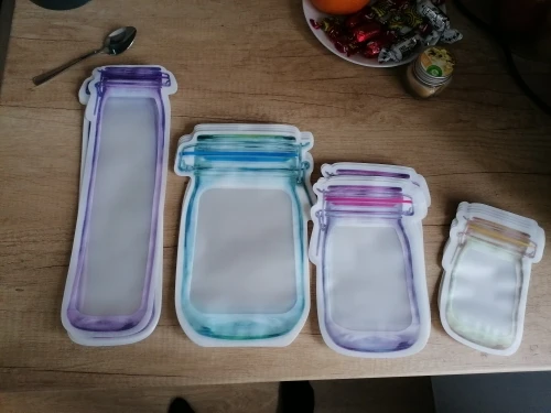 Я думал, что отверстия будут больше, но как только я привыкну к ним, они будут работать хорошо. Только большой синий цвет имеет красивый размер, но я могу видеть полезность всех. Они занимают мало места и легко хранить. Концепция отличная, но они не заменят банки для всего. Стирка, если действительно грязная, может быть проблемой. Возможно, будет здорово, если я приклею к орехам, сухим закускам или пасты. Я думаю, что они будут отлично подходят для путешествий с закусками! Я все еще доволен ими в целом! Заказал 10/27 и прибыл ко мне в Канаду 12/1. Очень быстрая доставка!
