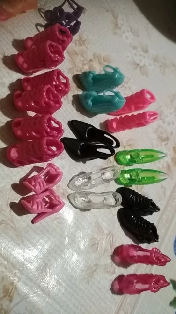 Туфельки хорошие и даже одни ролики. У некоторых есть облой, но это можно поправить. Обувь не вся барбейская, скорее всего, от монстрхаев отбраковка или уменьшенная копия. Что, в общем-то не плохо, ибо коллекции у них интересные. Несколько пар подошли Милли bmr, значит и пышке подойдут. Остальные подошли блондинке мтм. Две пары малы всем и одна пара непарная оказалась. Пакет отслеживался , пришел в пятерочку с другими заказами.