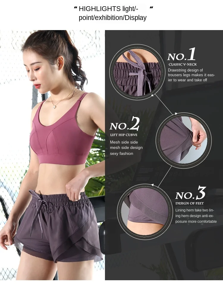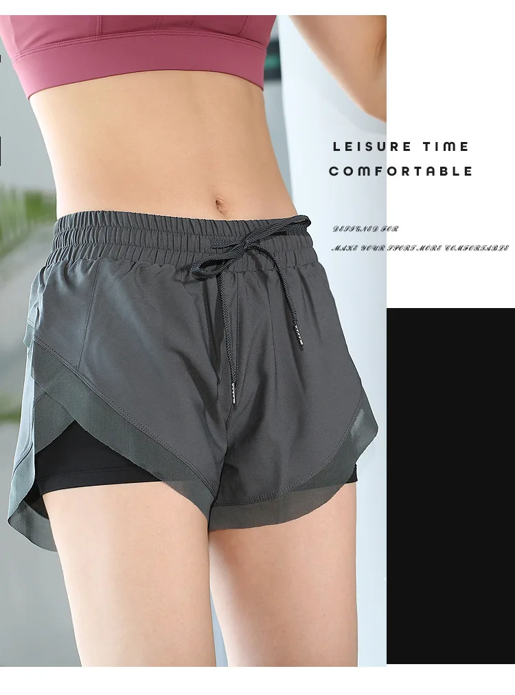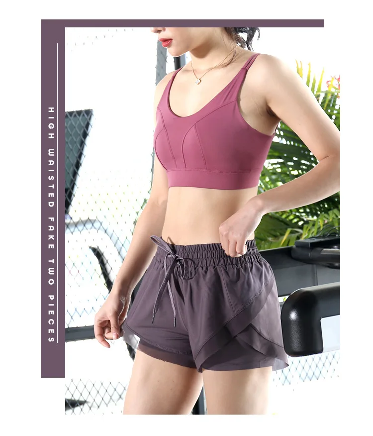 Спортивные шорты, женские шорты для йоги, велоспорта, фитнеса, тренировок, 2 в 1, повседневные эластичные шорты для бега, свободные спортивные шорты, пляжные шорты