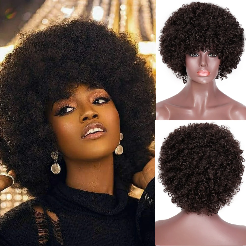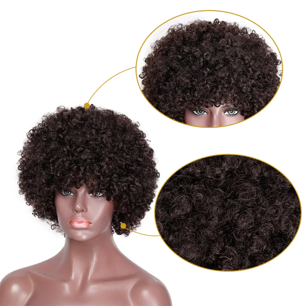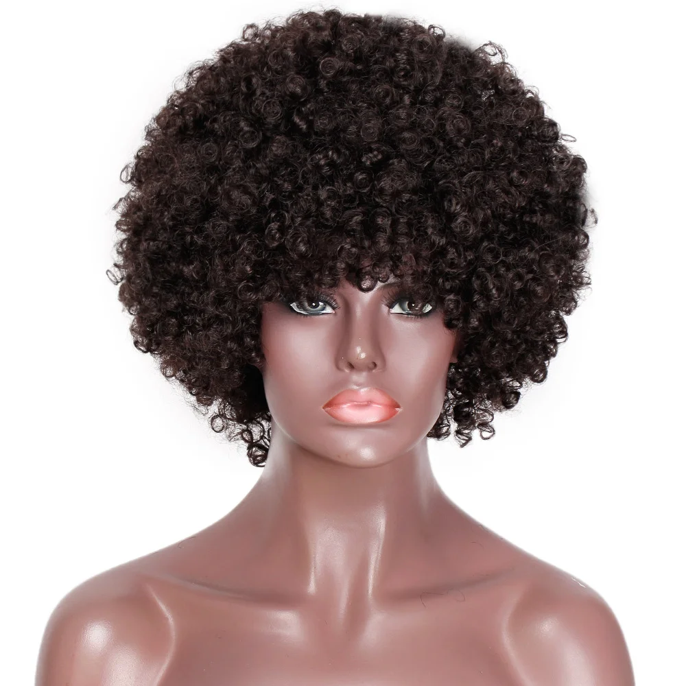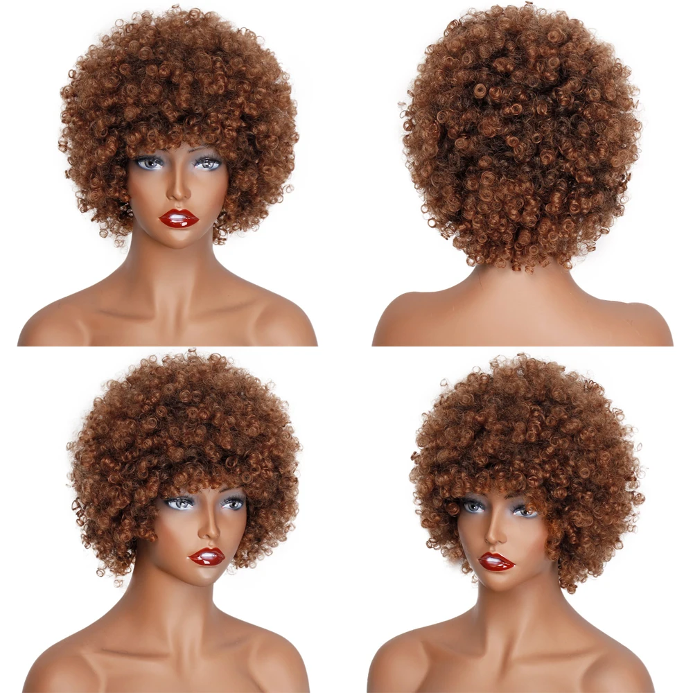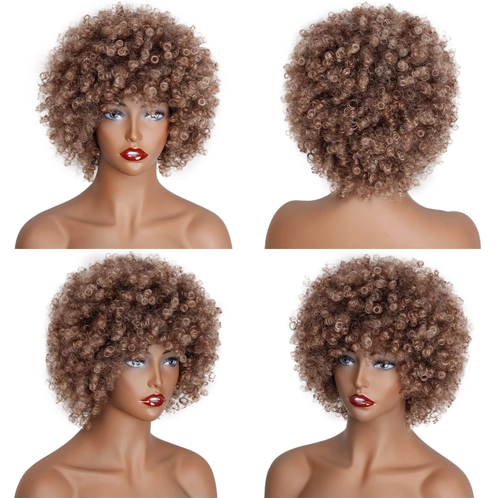 Великолепный Синтетический короткий парик с челкой, натуральный афро кудрявый парик, черныйсветлый парик для чернокожих женщин, парик для косплея