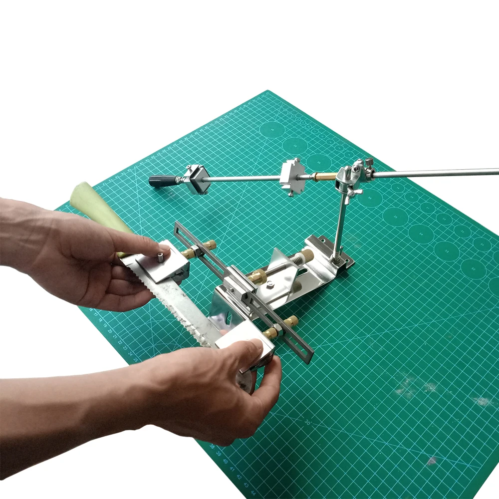Не очень крепко зажимает клинок, для более надежной фиксации необходима приспособа с двумя зажимами, но там цена кусается.