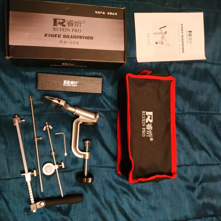 Товар отвечает описанию. Комплектность соответствует. Минимальный контролируемый градус заточки 15. Для RX008 не очень подходит. Пожалел что купил очень много доводки. Для этого зажима решил купить Ruixin Pro 3 поколения.