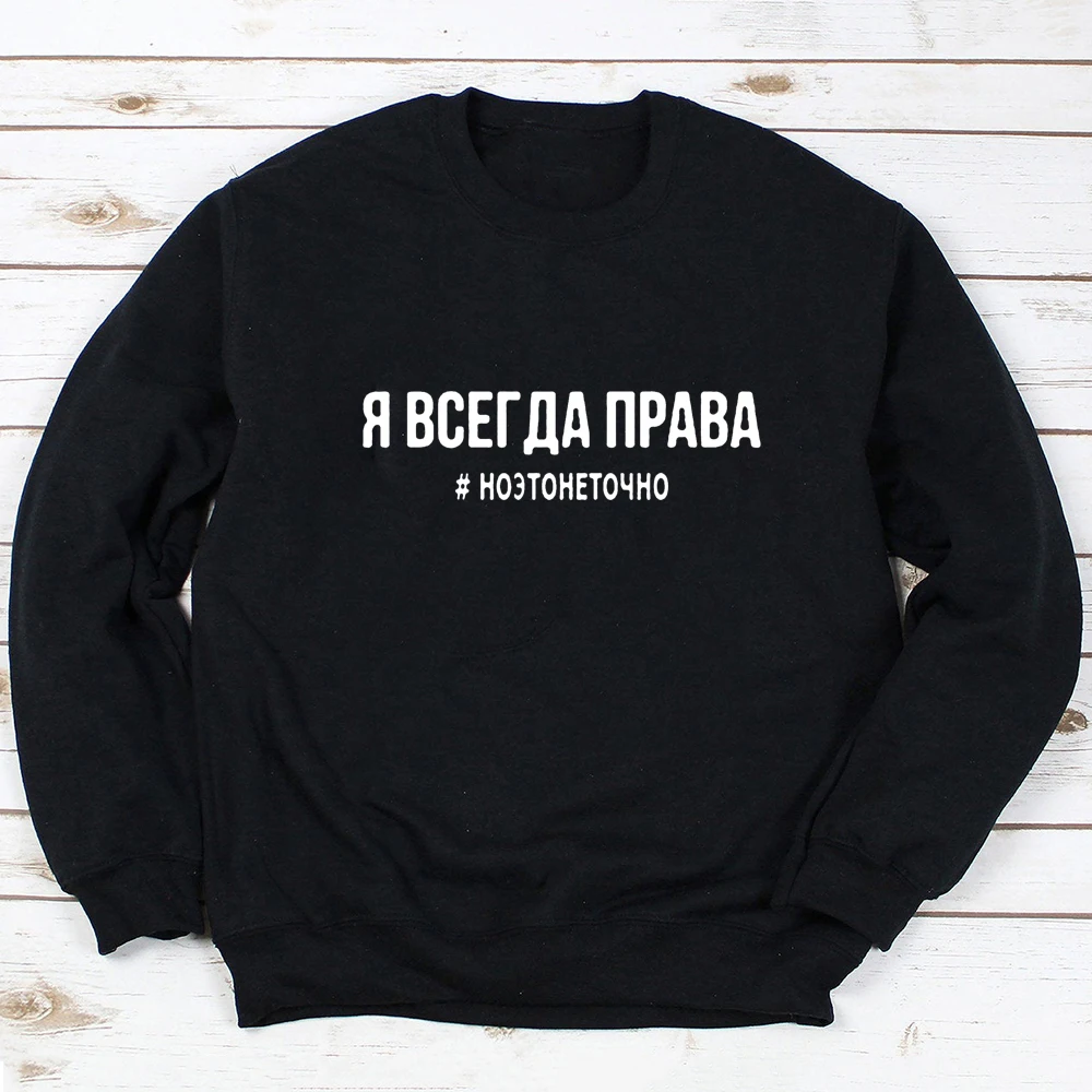 Толстовка в стиле Харадзюку с надписью на русском языке я всегда права # но это не совсем так