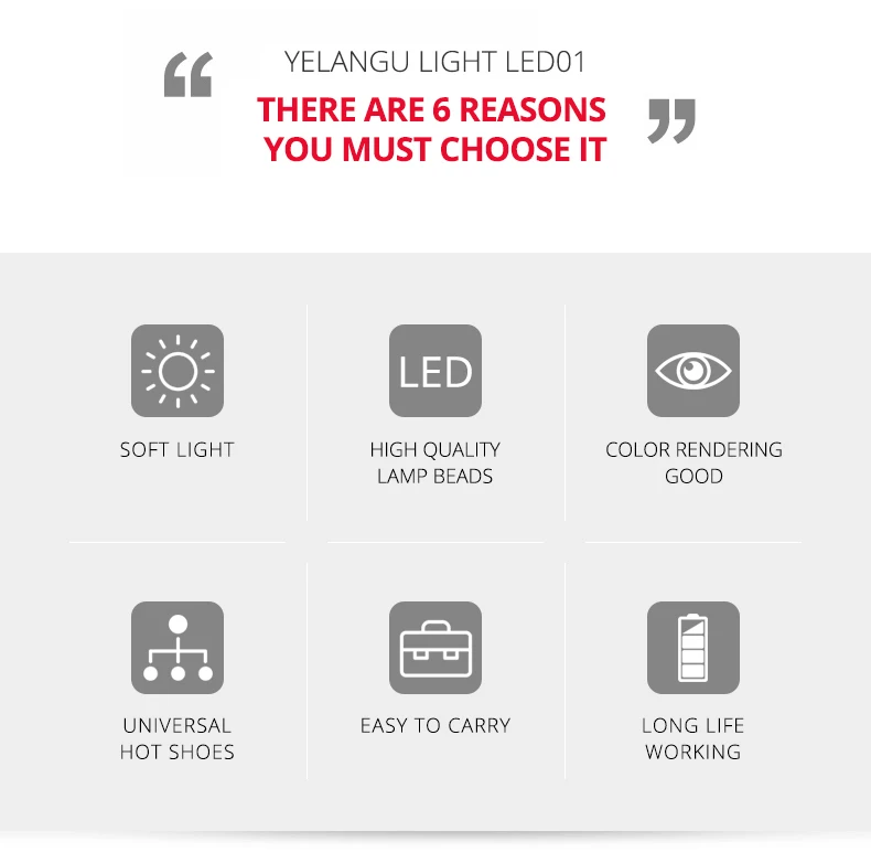 YELANGU VL49 5 Вт мини светильник 6500K фотосветильник свет запись ...