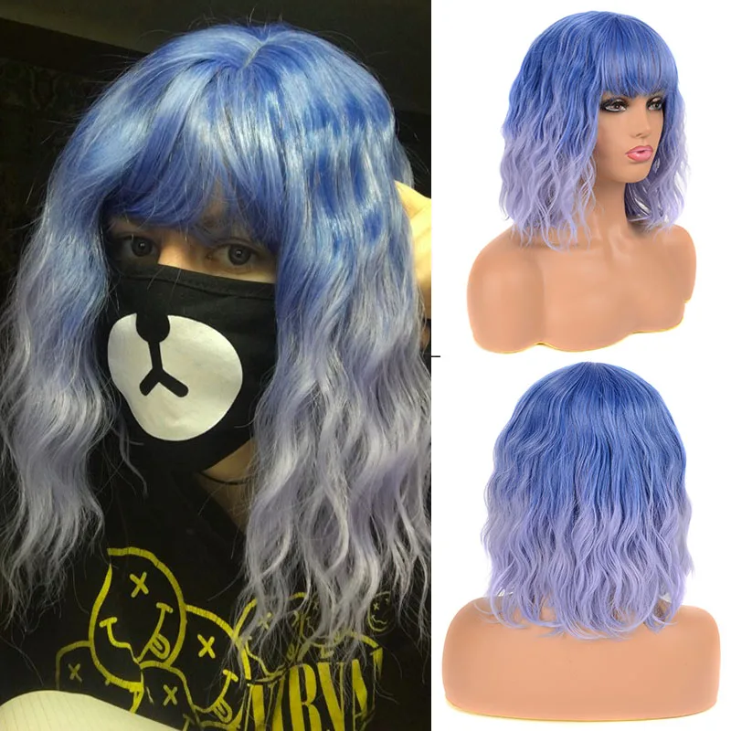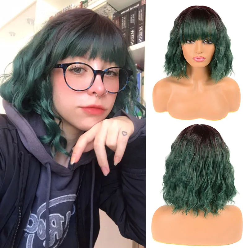 Короткие прямые синтетические парики Bobo зеленые парики для косплея с челкой для белыхчерных женщин милые парики для девочек Lolita
