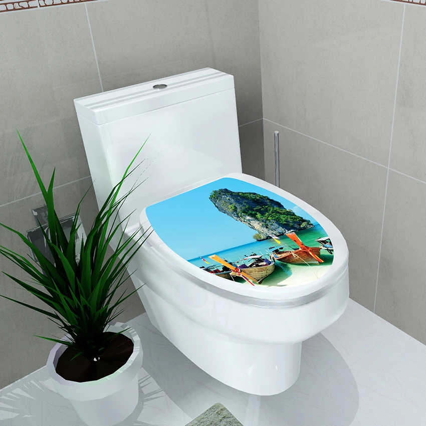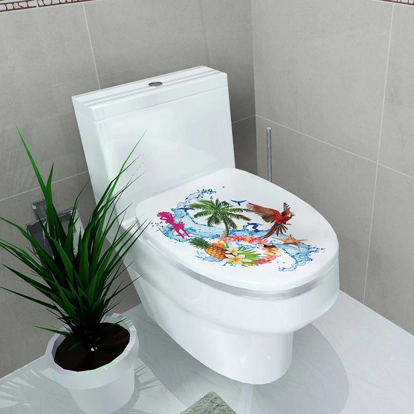 Наклейки на крышку унитаза для ванной комнаты, виниловые наклейки для унитаза, стикеры, наклейки с мультяшным рисунком, 32 см x 39 см