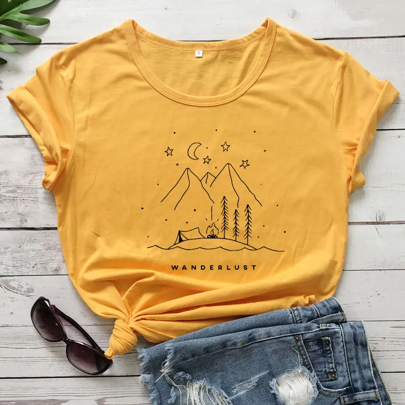 Футболка из 100% хлопка с изображением Луны и леса, женская футболк...