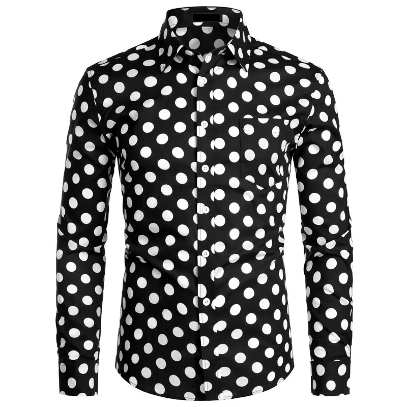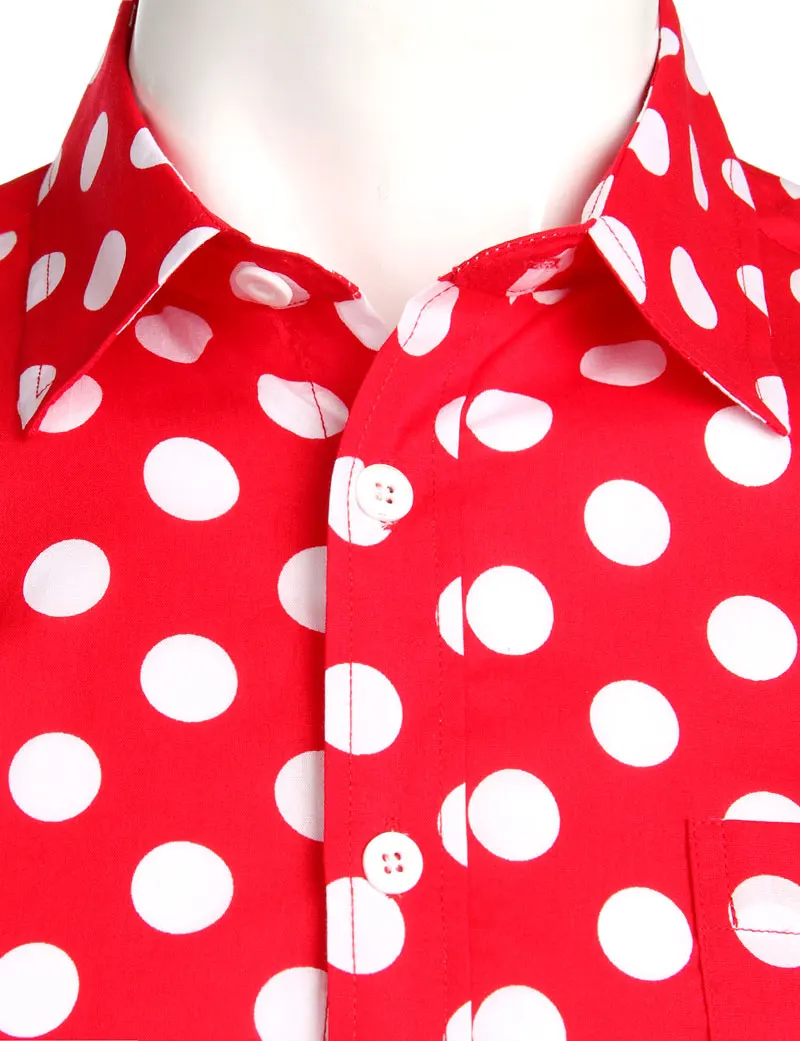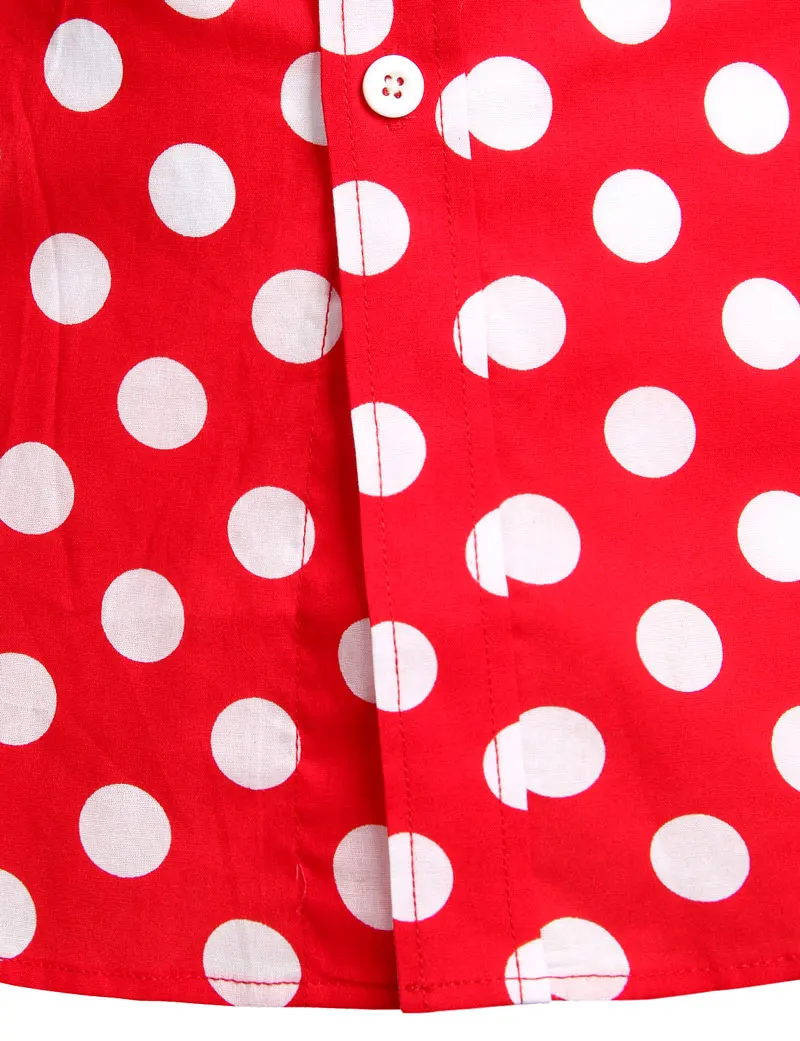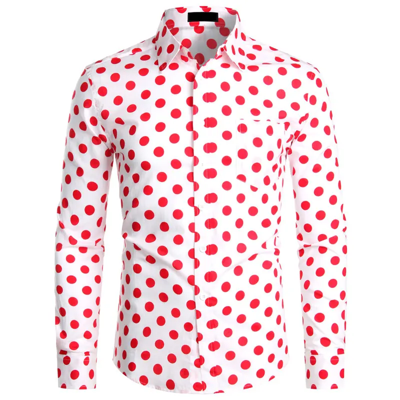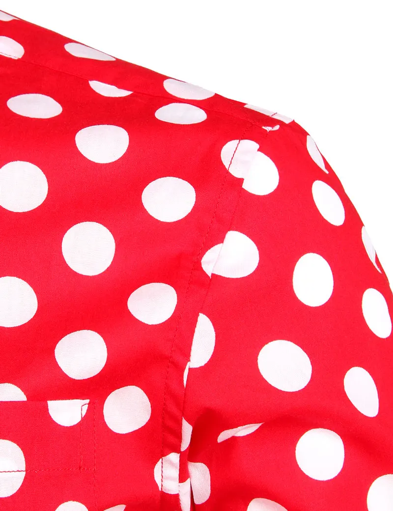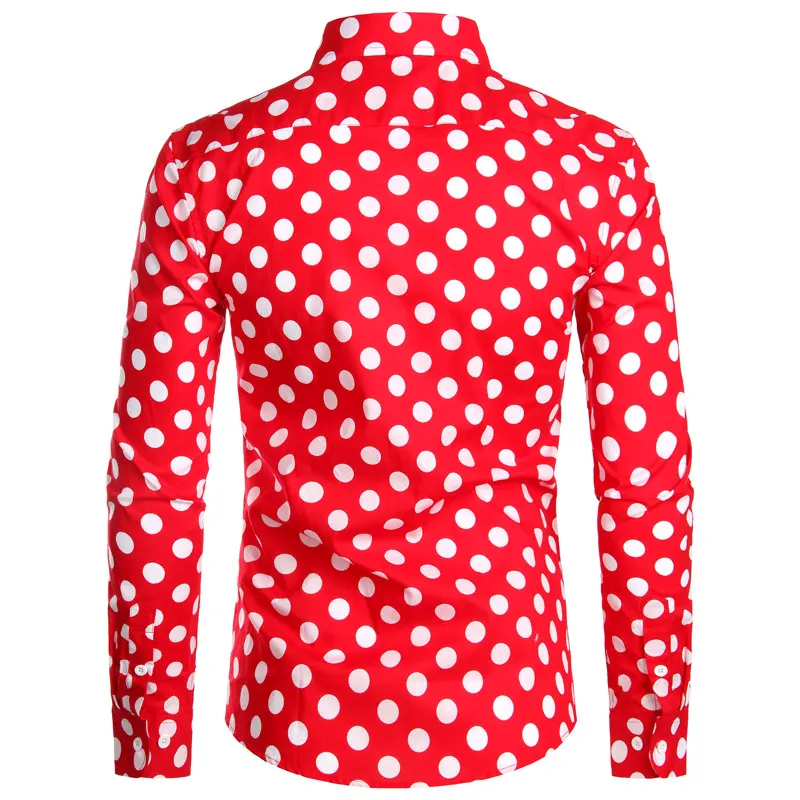 Рубашка мужская в горошек, повседневная классическая рубашка на пуговицах, для вечеринки, клуба, красный цвет