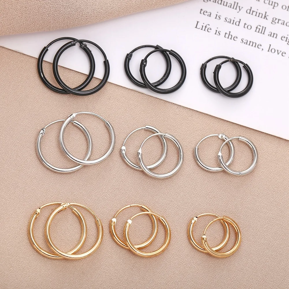 Простые маленькие круглые металлические серьги-кольца в стиле панк для женщин и мужчин, золотистые, серебристые, черные глянцевые серьги-кольца Huggie