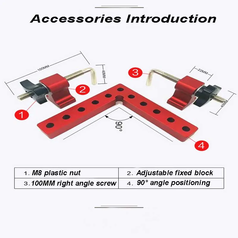 Спецификация:Новинка и высокое качество!Материал: алюминиевый сплавУгол: 90 градусовФорма: LЦвет: красныйСовместимость: Подходит для дерева/металла под прямым углом/90 градусов сварки/сварки