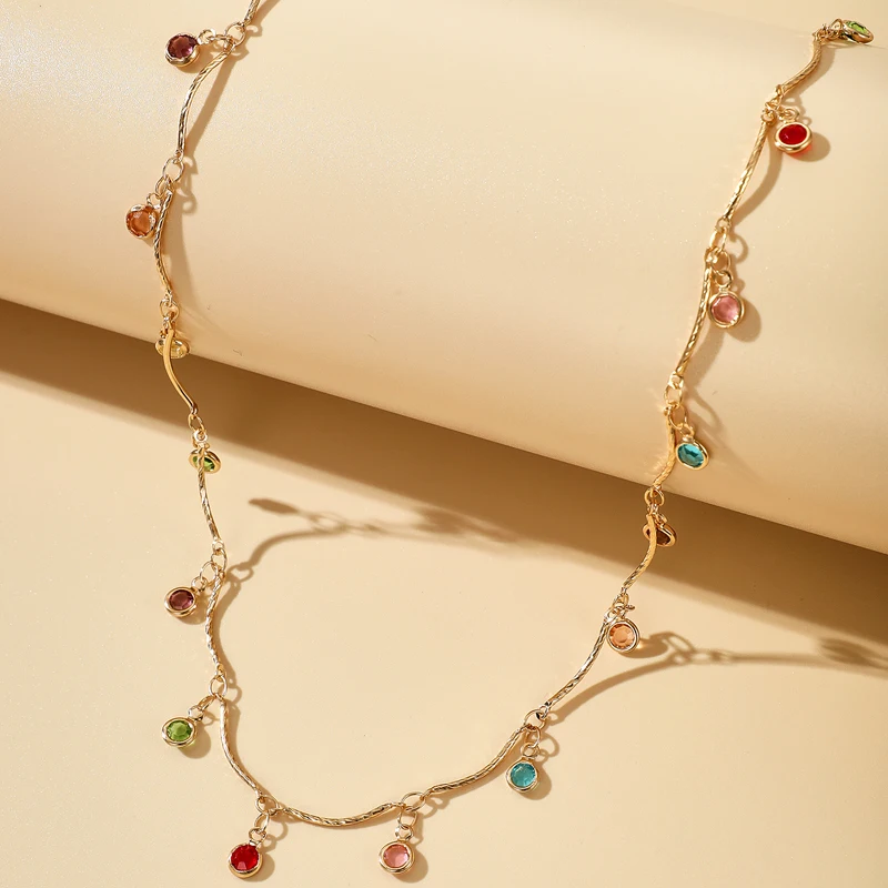 Ожерелье-чокер женское, из золотистого сплава, с разноцветными бусинами, 8877