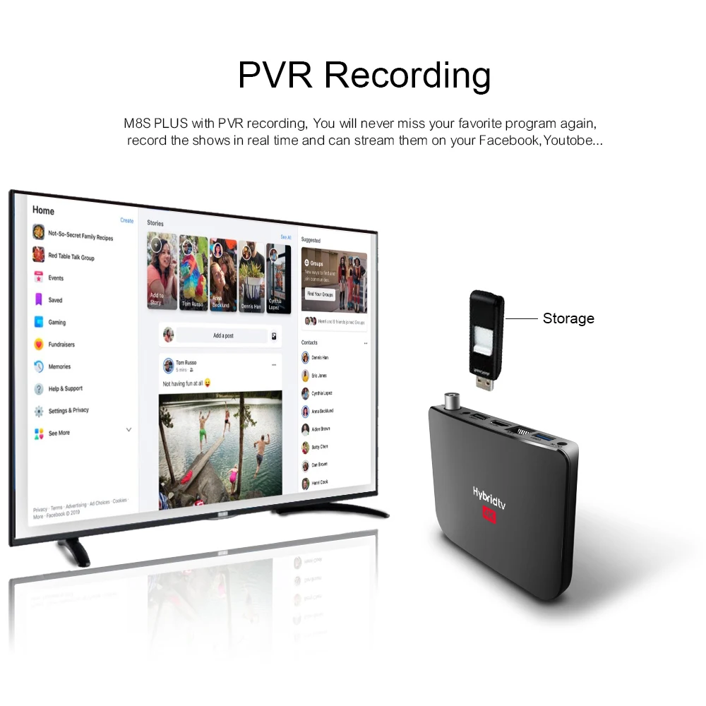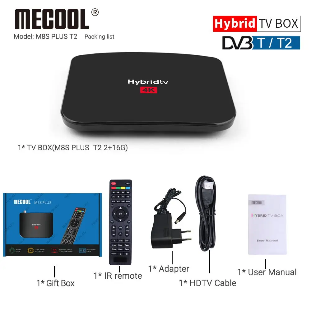 ТВ-приставка Mecool Android DVB T2TC M8S PLUS Hybrid TV Amlogic S905X2 четырехъядерный 2 Гб 16 Гб 4K потоковый медиаприемник домашний плеер