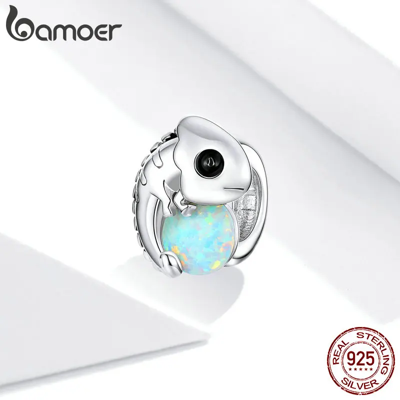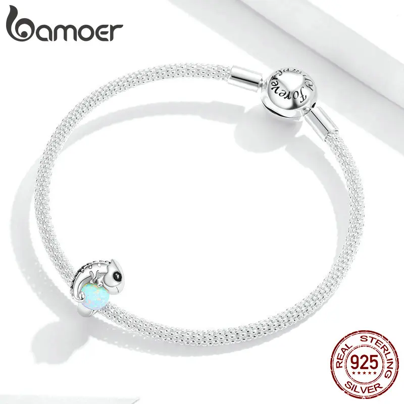 Металлические бусины-хамелеоны bamoer для женщин, изготовление ювелирных изделий из белого опала, серебро 925 пробы, подвеска для оригинального серебряного браслета BSC254
