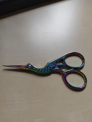 Оперативно отправлено, быстро доставлено, ножницы красивые, режут неплохо. радужное покрытие явно будет стираться в местах трения двух половинок ножниц