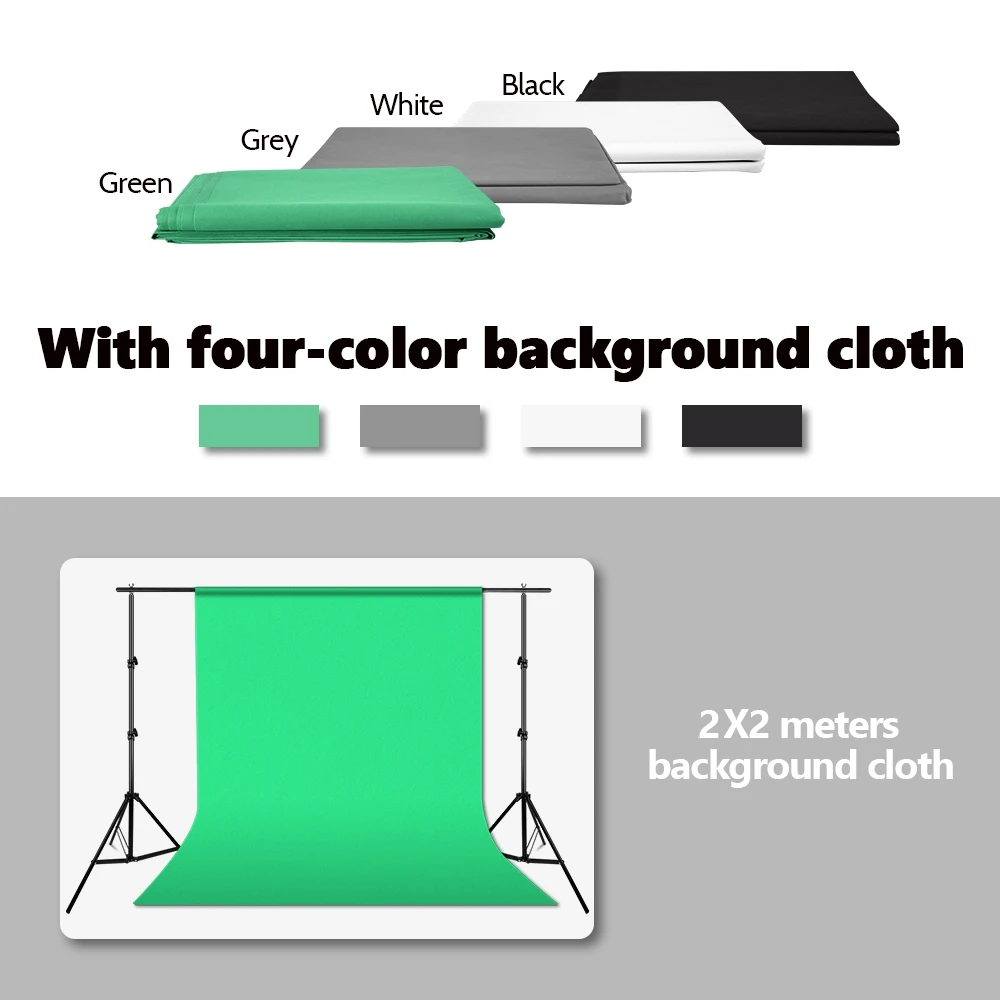 Портативный фон для фотостудии с подставкой, комплект 2x2 м, система поддержки фона, белый, черный, зеленый экран, Chroma key, фон для фотосъемки