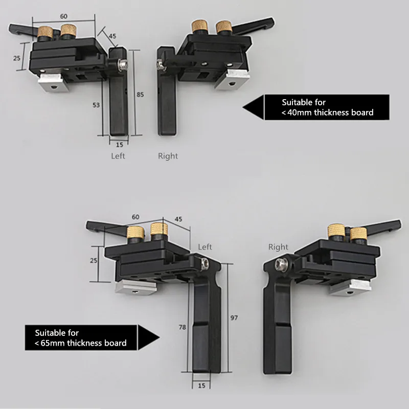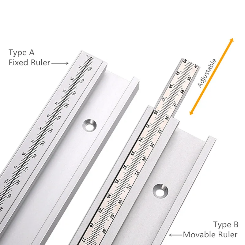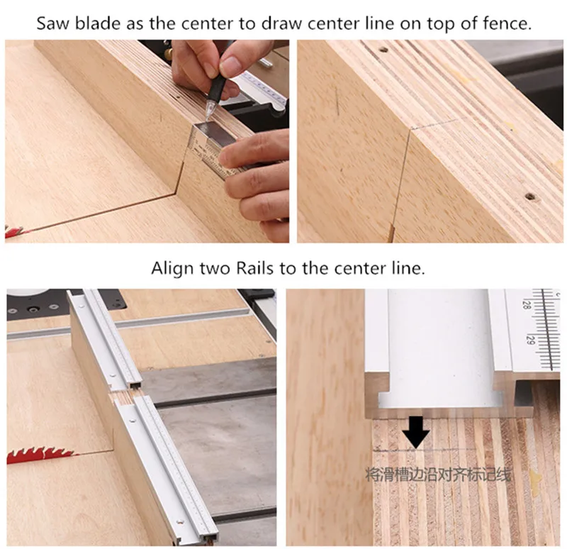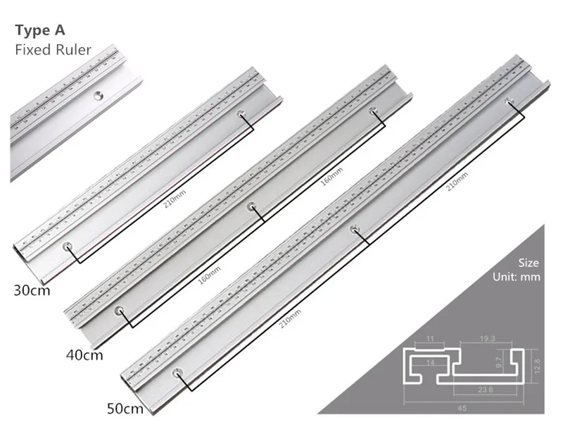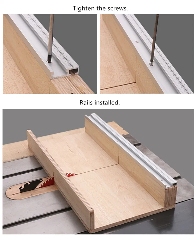 1. Подходит для деревообработки. 2. Прочный и удобный в использовании. 3. Он позволит вам сделать все ваши скользящие зажимы и приспособления нужны на столе маршрутизатора, столовых и ленточных пилах. 4. Вы можете легко и быстро прикрепить подножки к вашему фрезерному столу или столовой посуде без специальных зажимных приспособлений. 5. Со шкалой, проста в использовании, облегчит вашу работу. Материал рейки: алюминиевый сплав Длина рейки: 30 см/40 см/50 см Тип направляющей: фиксированная/регулируемая Материал упора торцов: бакелит Материал винта: латунь Размер: как на фото
