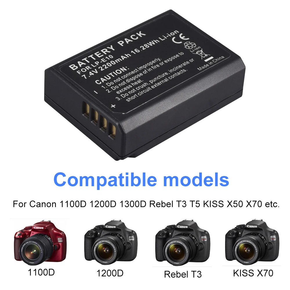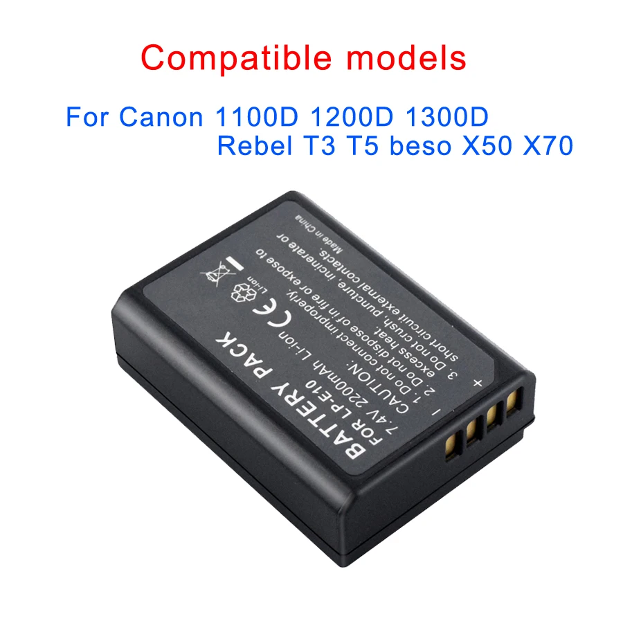 Для CanonEOS Rebel T3Rebel T5Rebel T6Kiss X50Kiss X70EOS 1100DEOS 1200DEOS 1300DАтрибут продукта:Номер модели: LP-E10Тип: литий-ионный аккумуляторНапряжение: 7,4 вЕмкость: 2200 мАчЦвет: белыйВес: 60 гПреимущества батареи:1. Лучшая производительность и Идеальная совместимость: полностью совместим с оригинальным зарядным устройством и пылесосом. Легко устанавливается.2. Надежность: Отсутствие эффекта памяти, низкий уровень саморазряда (1% в месяц). Запатентованная технология балансировки батареи,Встроенные цепи защиты обеспечивают безопасность и надежность от огня и взрыва.3. Большая безопасность: Качественные литий-ионные батареи с CE и UL одобрением. Он импортирует из Японии, качество гарантировано.4. Передовые литий-ионные технологии обеспечивают улучшенную плотность энергии.5. Сильная Гарантия: 7 дней возврата денег, 1 год ограниченной гарантии продавца от дефектов производителя с даты покупки.Теплые Примечания:1. Пожалуйста, полностью зарядите аккумулятор перед первым использованием.2. Если вы не собираетесь использовать аккумулятор в течение месяца или дольше, храните его в чистом, сухом, прохладном месте вдали от огня и воды.3. Пожалуйста, Перезарядите его после длительного хранения. Поскольку Ni-Cd/Ni-mh и литий-ионные аккумуляторы будут саморазряжаться во время хранения.4. Не Разделяйте, не выдавливайте и Не ударяйте.5. Если товар неисправен, пожалуйста, сообщите нам в течение 7 дней после его получения.6. Как правило, мы отправляем товары в течение 2-3 рабочих дней после завершения оплаты. Как правило, после отправки Экспресс-система занимает 2-3 рабочих дня для обновления номера отслеживания в систему. В основном посылка может быть доставлена в течение 6 недель. Если вы не получили свою посылку вовремя, пожалуйста, сообщите нам, мы будем отслеживать посылку.