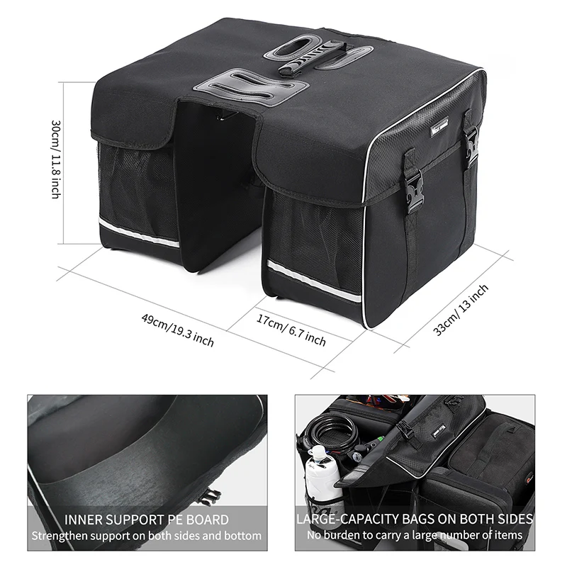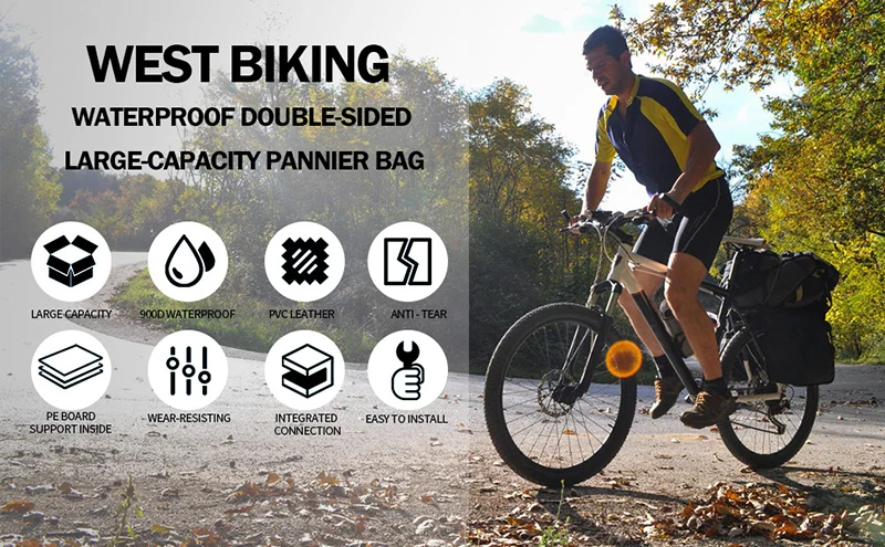 Велосипедная сумка WEST BIKING 30 л, водонепроницаемая, двухсторонняя, вместительная, задняя стойка, сумка на багажник для горных велосипедов