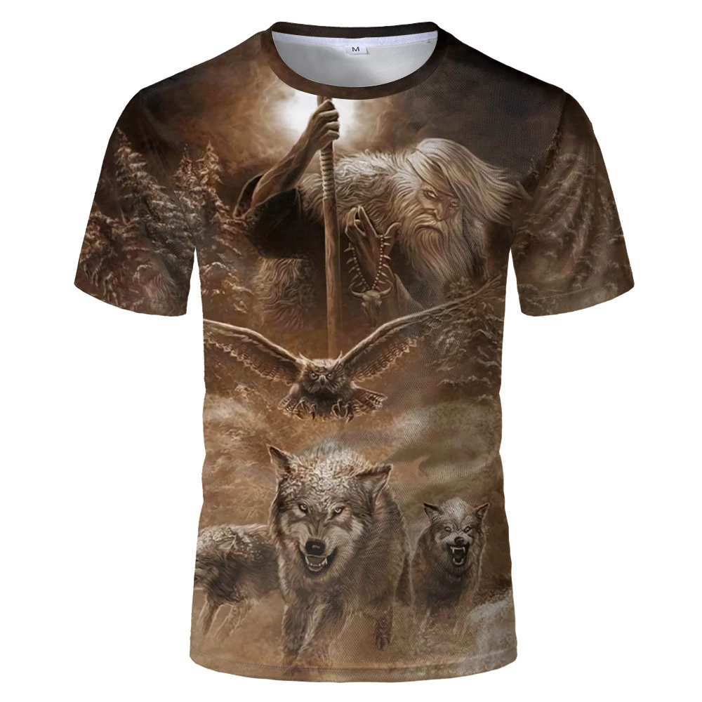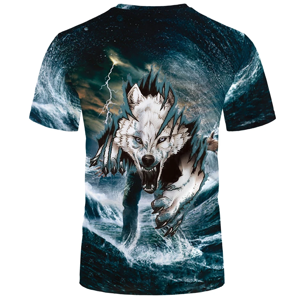 Футболка мужская с 3D принтом волка, крутая рубашка с короткими рук...